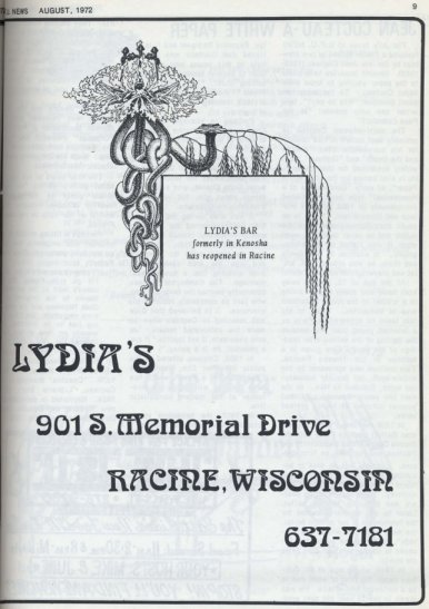| Advertisement for Lydia's bar in Kenosha