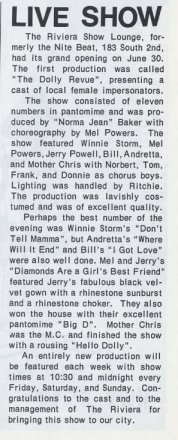 | Advertisment for the opening of the Riviera Show Lounge