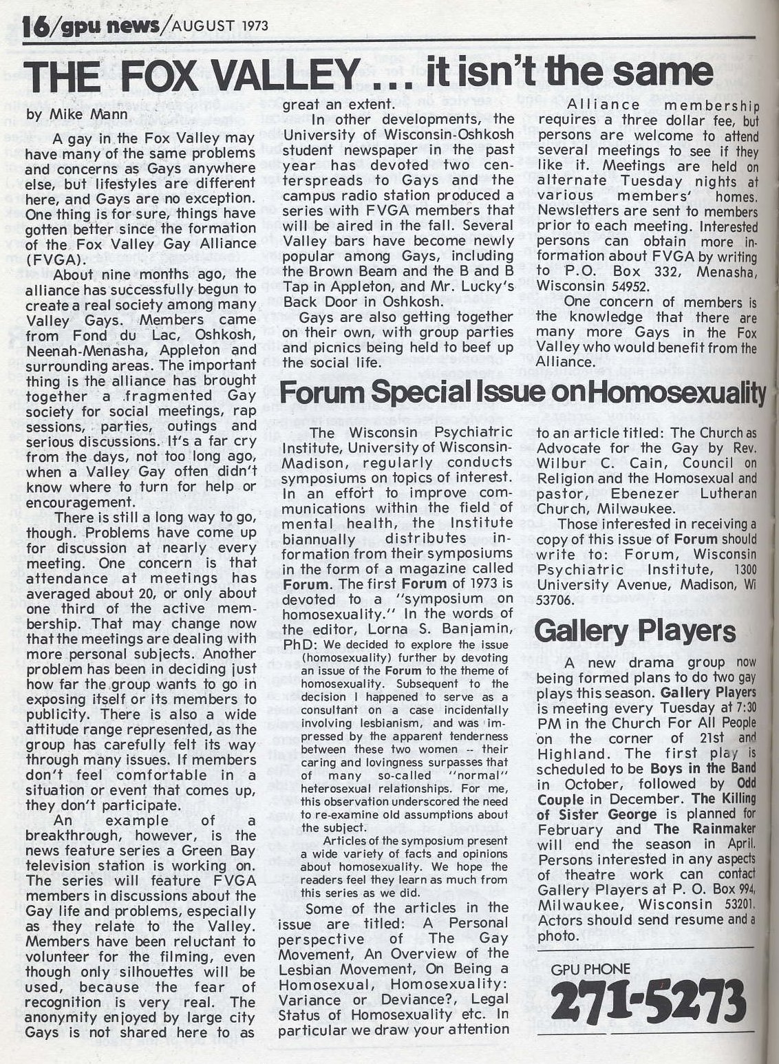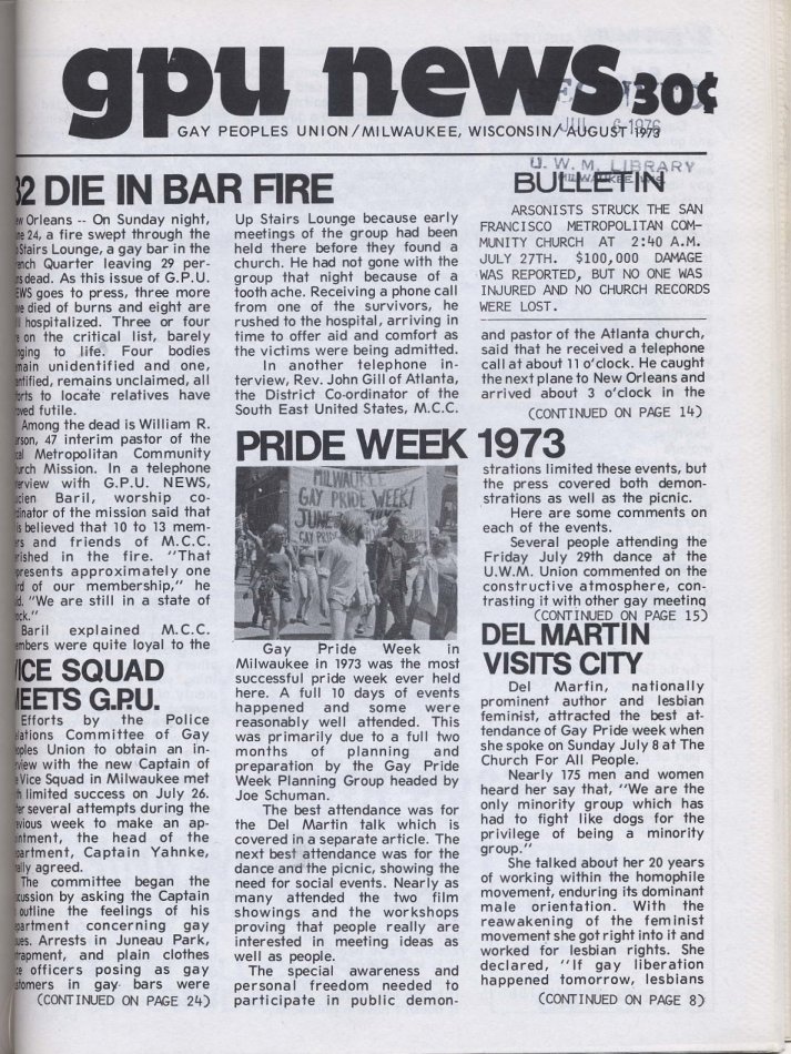 Special thanks to UWM Special Collections Department for assistance in compiling the GPU News cover gallery and extracts of contents.
