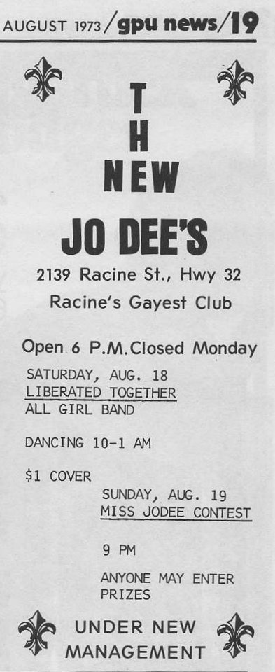 Advertisement for the New Jodee's Bar in Kenosha