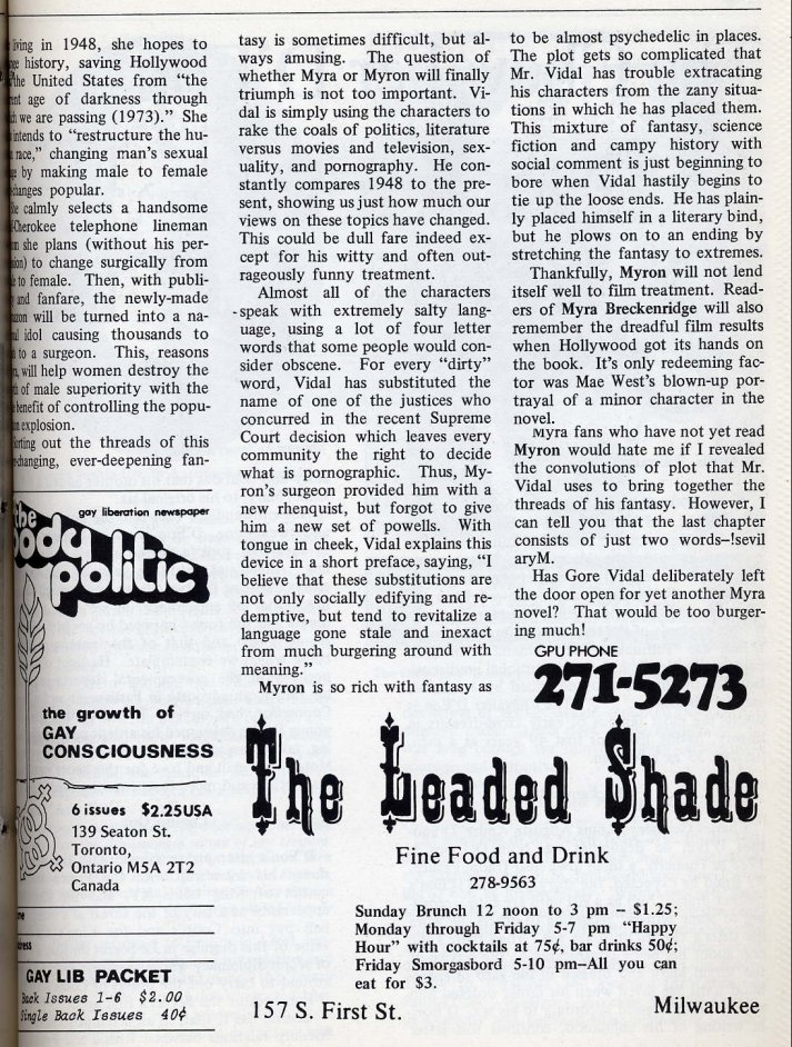 Special thanks to UWM Special Collections Department for assistance in compiling the GPU News cover gallery and extracts of contents.