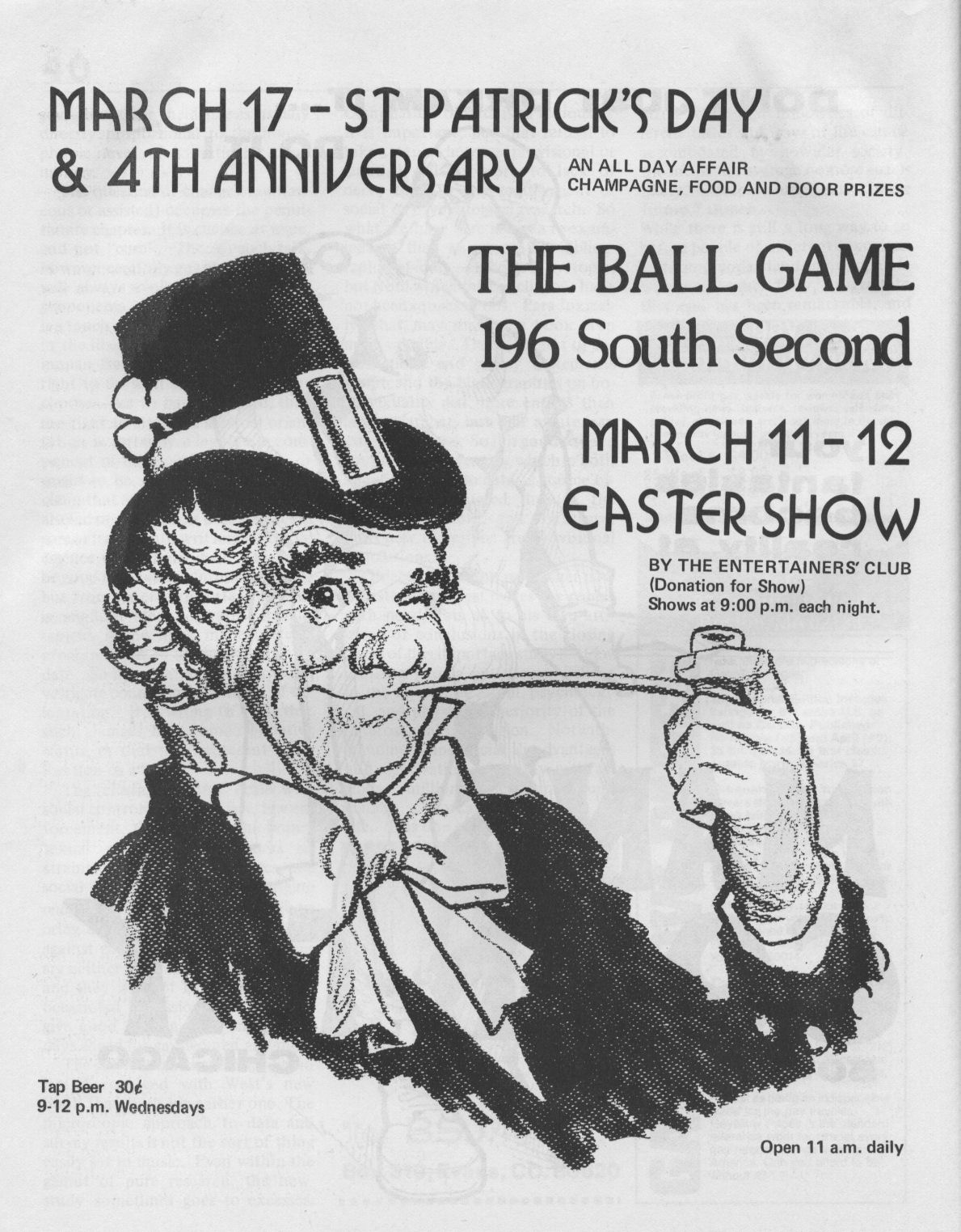 Ad: BallGame St. Patrick's Day and 4th anniversary party