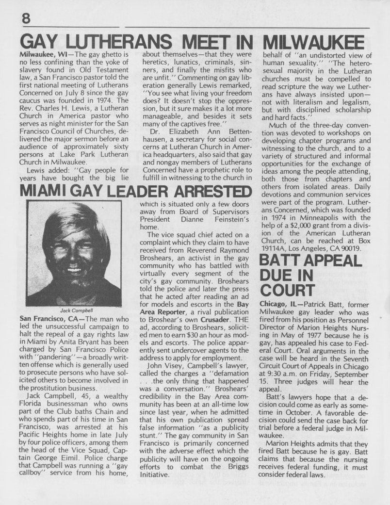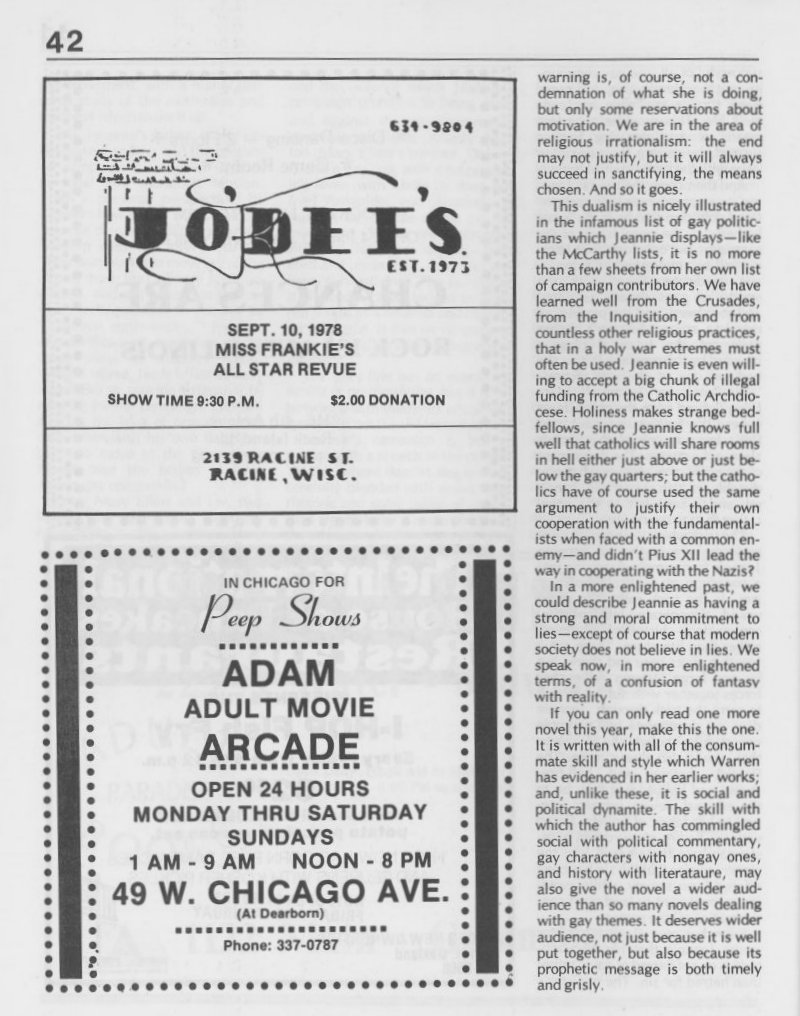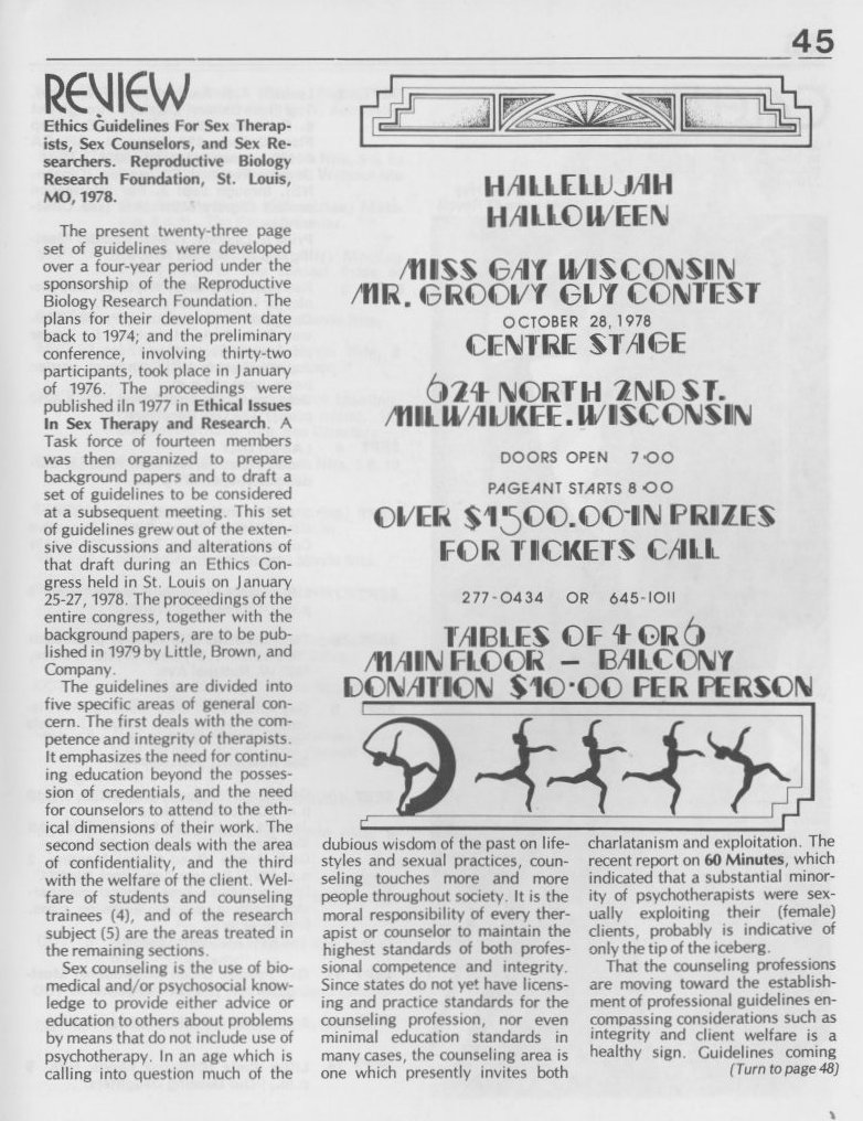 Note: The GPU News was nationally distributed, and included a high percentage of general content: gay and lesbian news from other cities and states, original fiction, stories, and poetry, etc. The excerpts presented here are concentrated on local interest (Milwaukee and Wisconsin). Those so inclined are encouraged to visit the UWM Libraries- Special Collections Department in Milwaukee to view the complete issues, which include all of the general interest materials not included here.