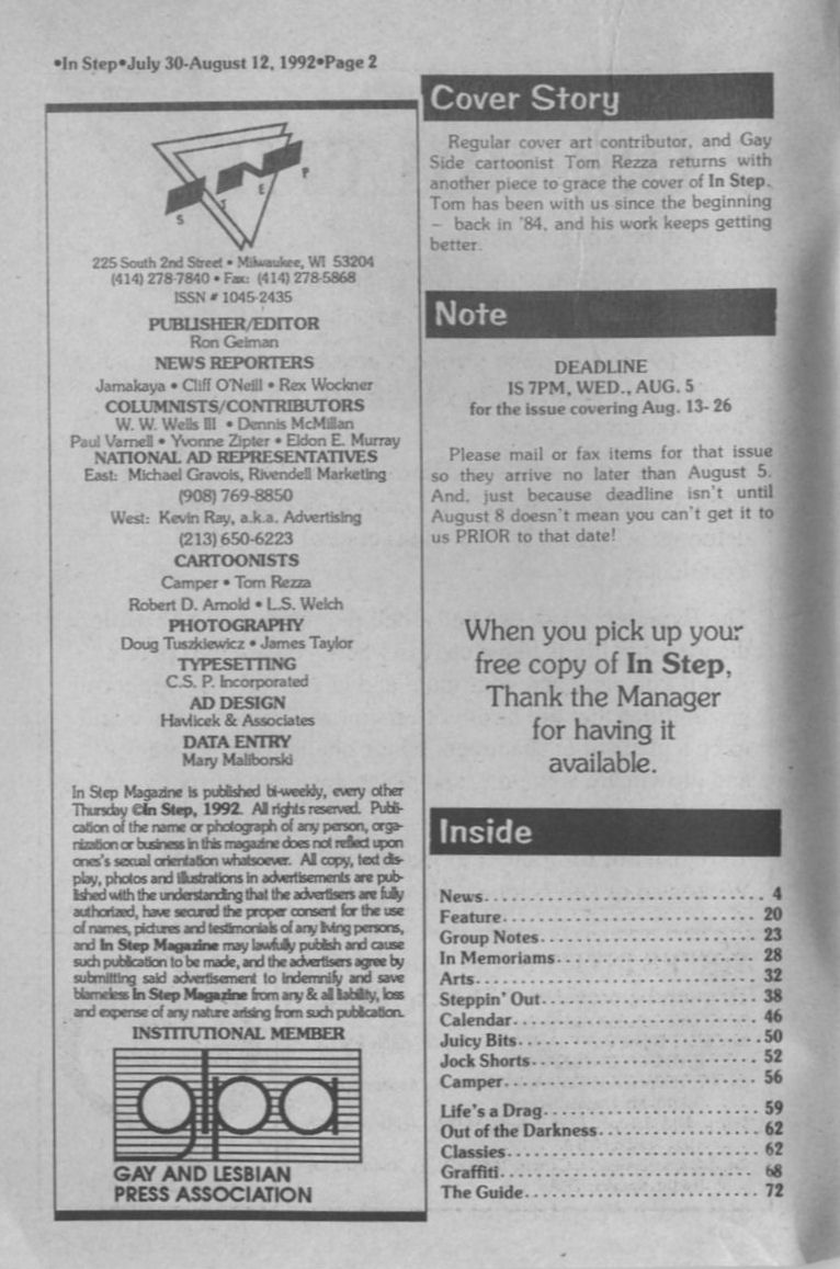 Contents, + cover artist Tom Rezza (page 2)