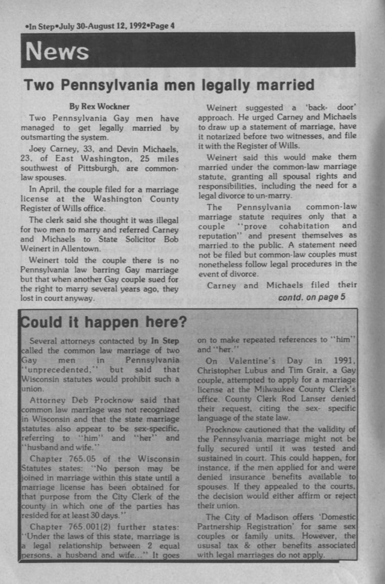 Pennsylvania men legally married; Wisconsin law examined (page 4)