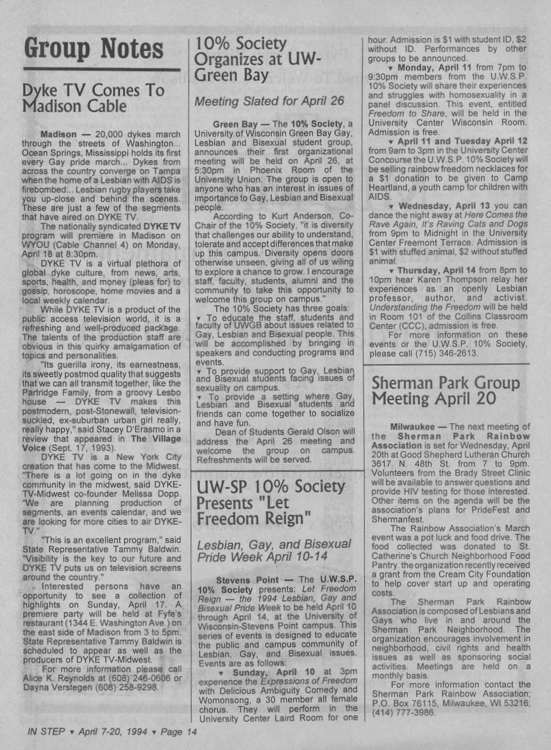Volume 11, Number 7 -- April 7-20, 1994