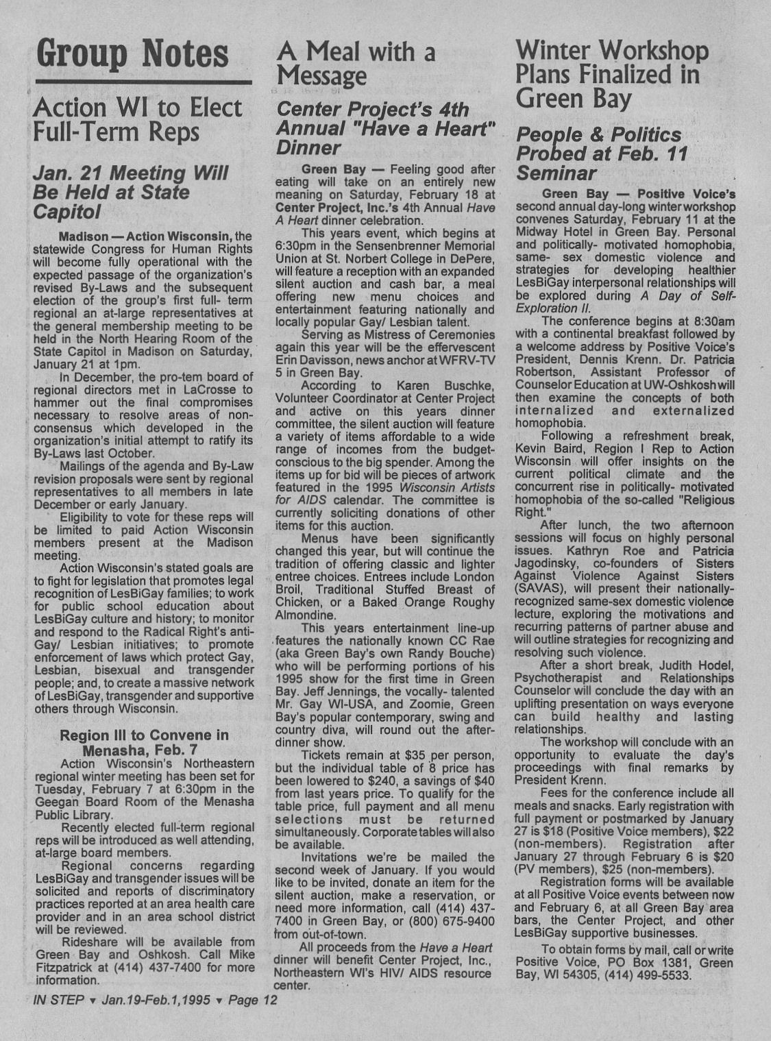 Volume 12, Number 1 -- January 19-February 1, 1995