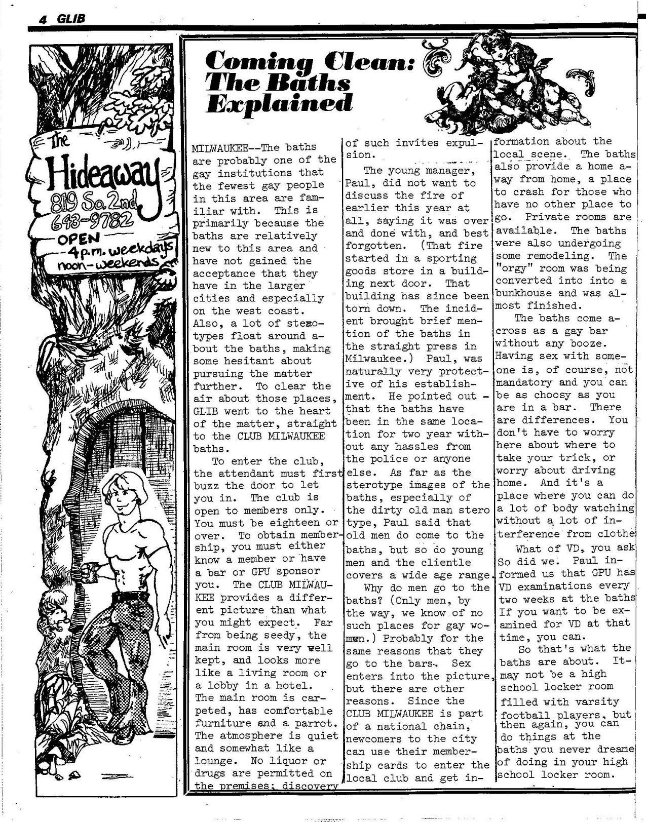 Coming Clean: the Baths explained; + Advertisement for The Hideaway (page 4)