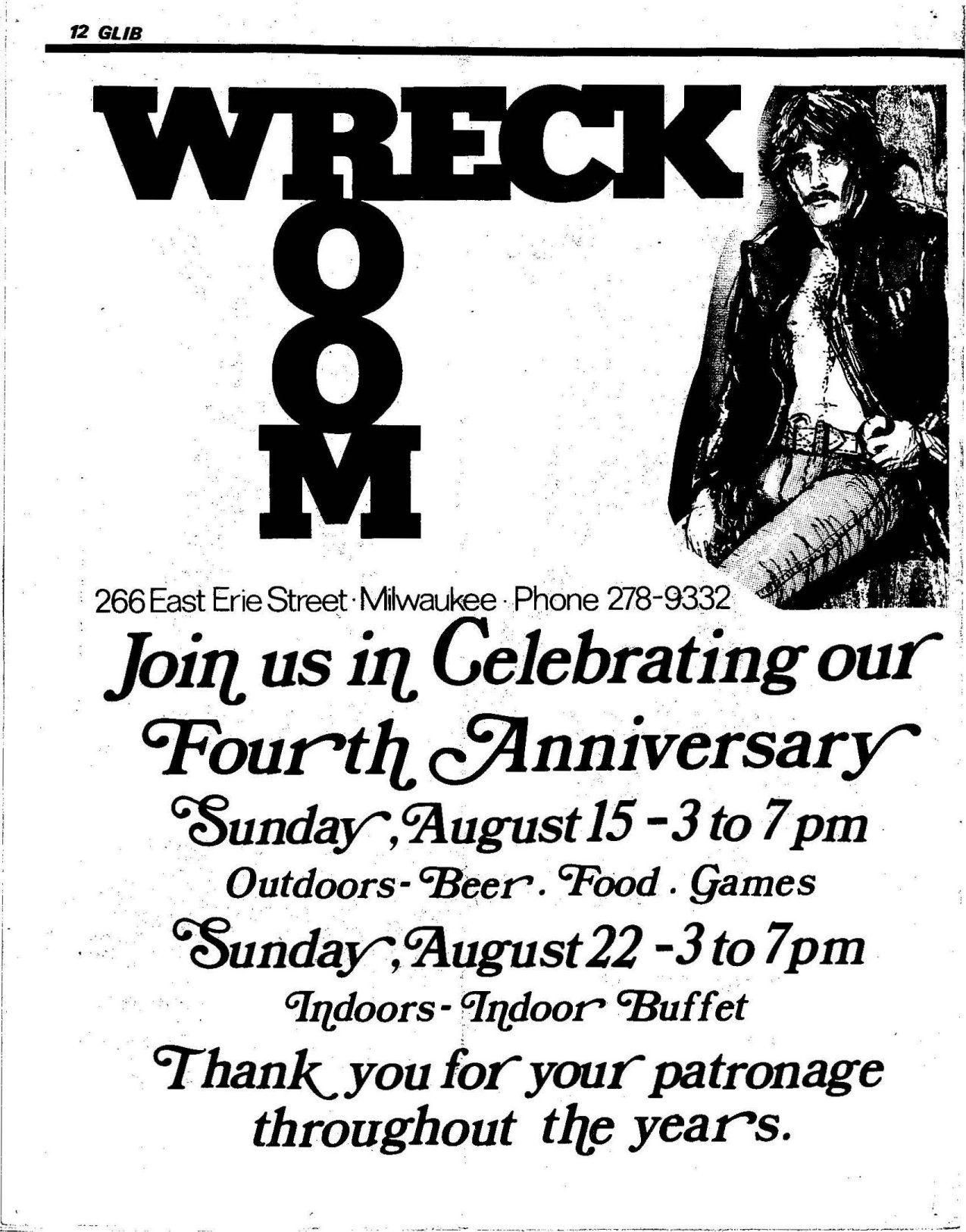 Advertisement for 4th Anniversary of the Wreck Room bar (page 12)