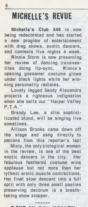 Michelle's Review, regular weekly drag show beginning (see ad below)