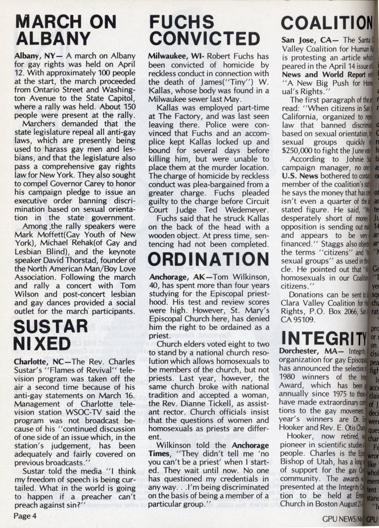 GRNL + 1980 Pride Celebration planning + Circulation information about the GPU Update newsletter (page 10)