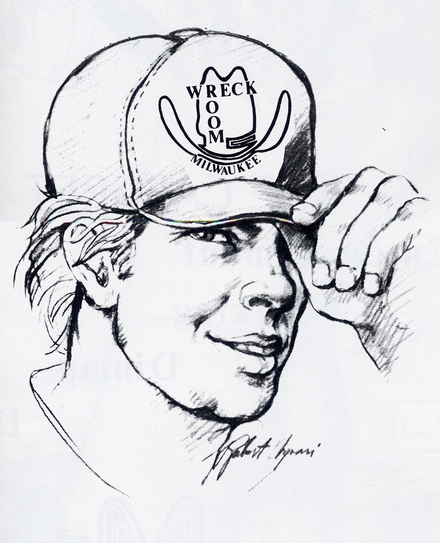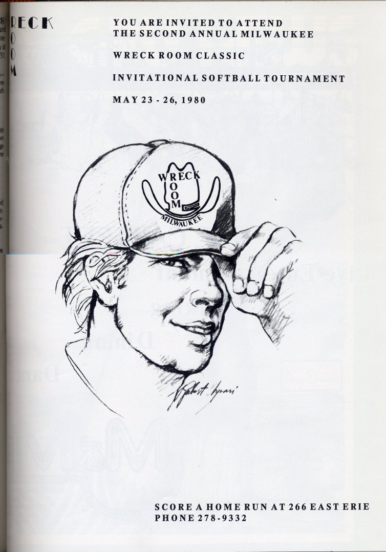 Ad for 2nd annual Wreck Room Classic softball tournament (featuring Uyvari artwork) (page 43)