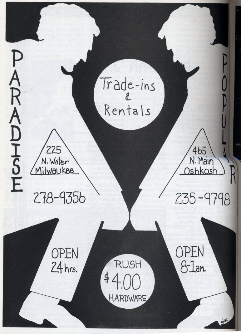 Ad for Paradise Book Stores, featuring sale of "poppers" (page 26)
