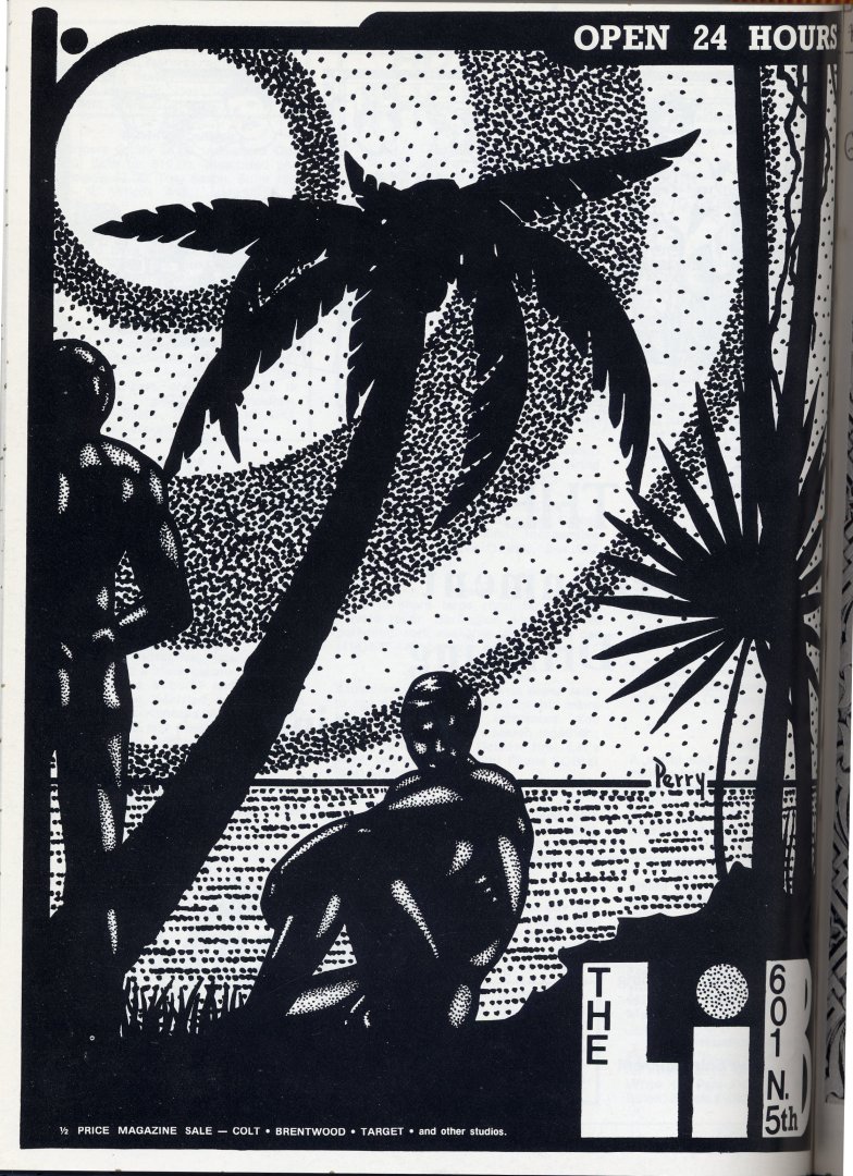 Advertisement for Lib Adult Theatre featuring artwork by Perry (page 48/ back cover)