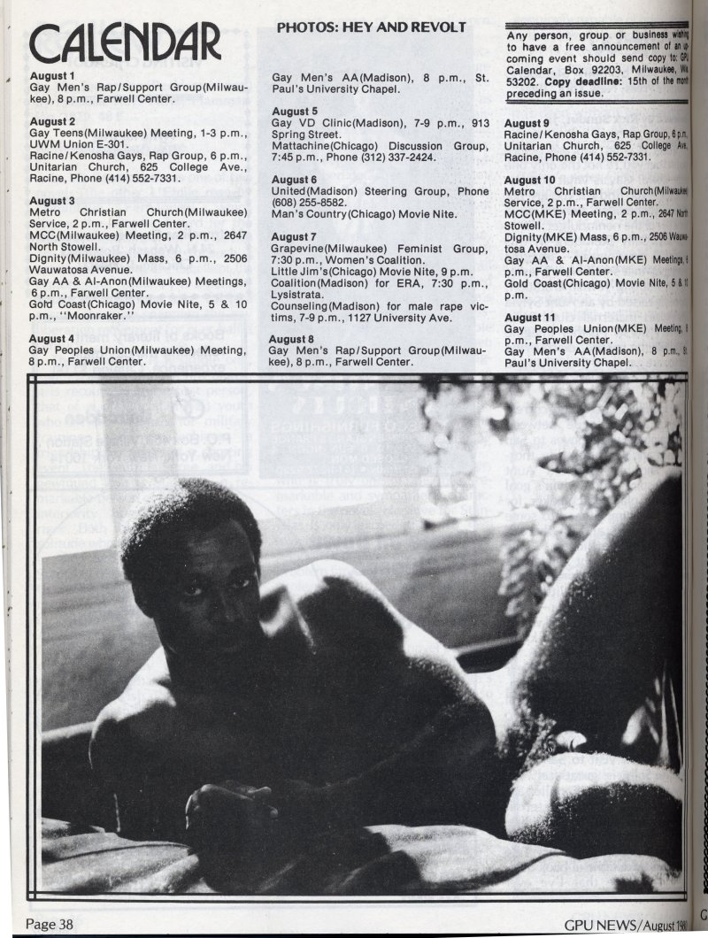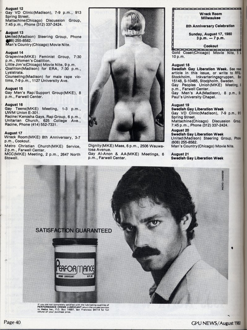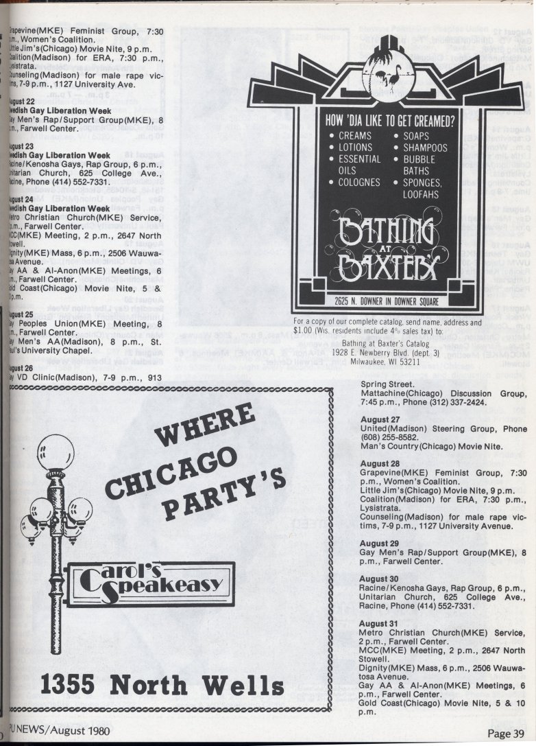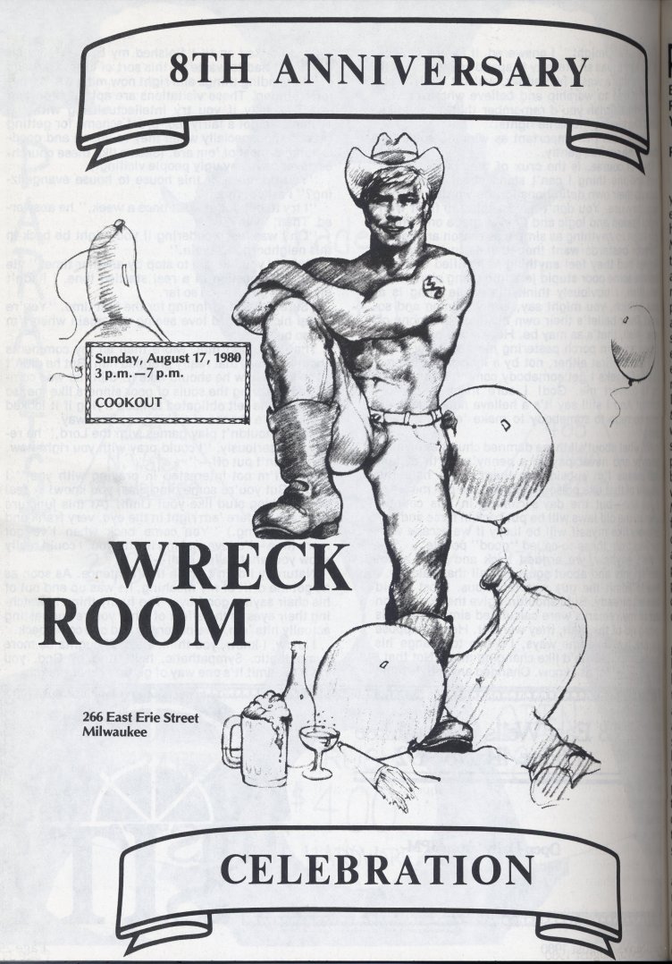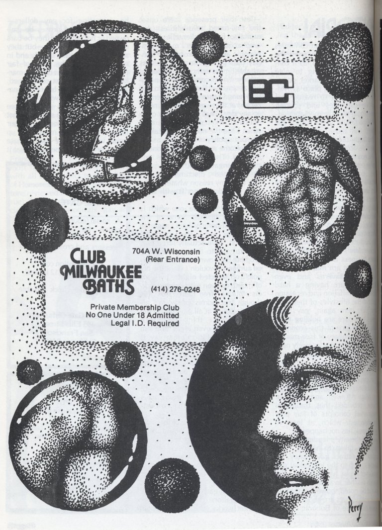 Advertisement for Club Milwaukee Bath house featuring artwork by Perry (page 12)