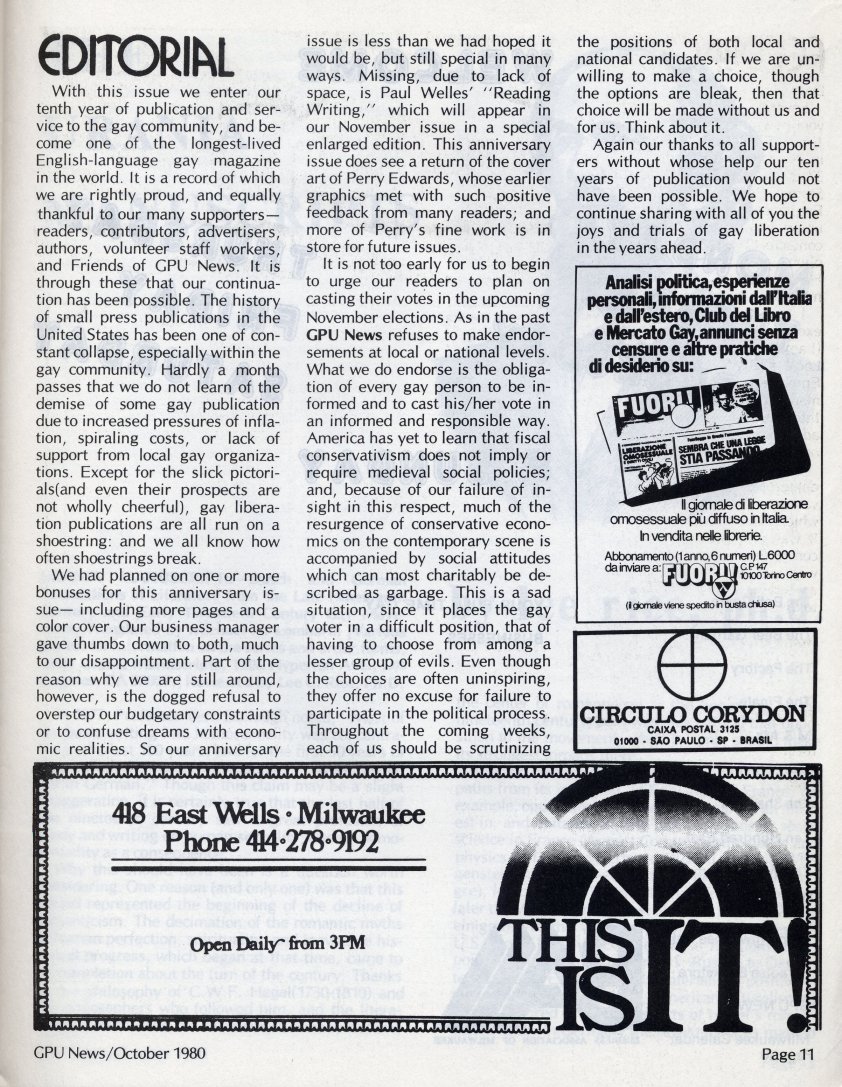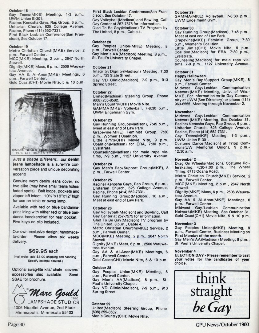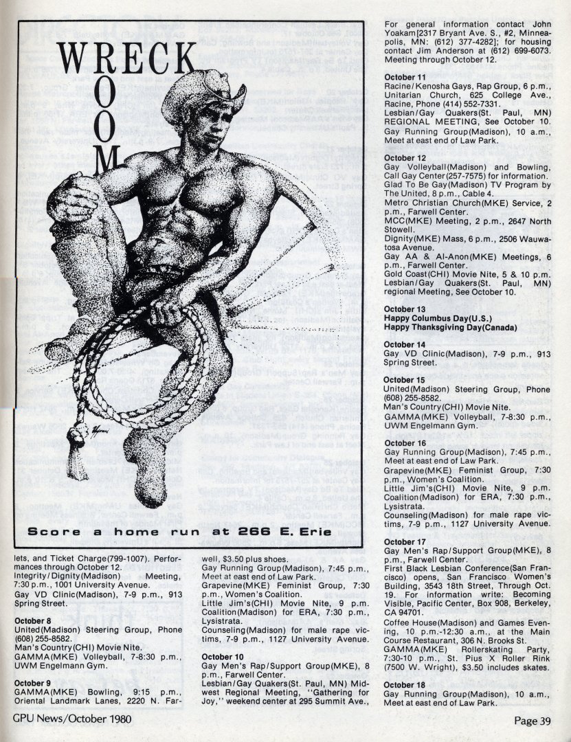 Advertisement for BAM, Business Association of Milwaukee (gay bar owner associtation)
