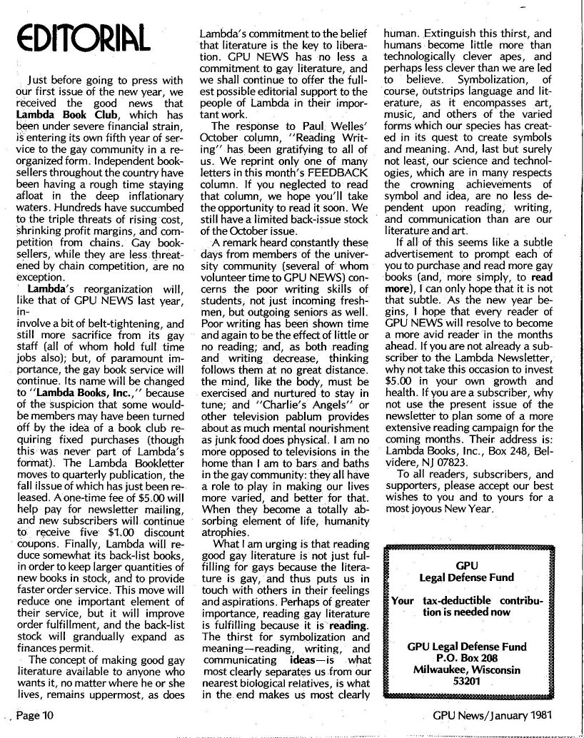 Editorial: Lambda Book Club