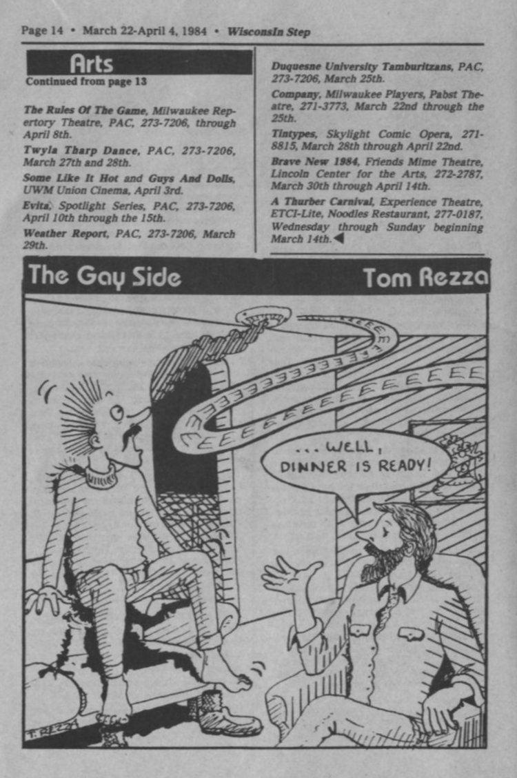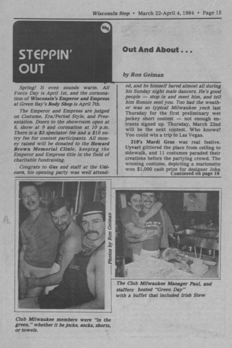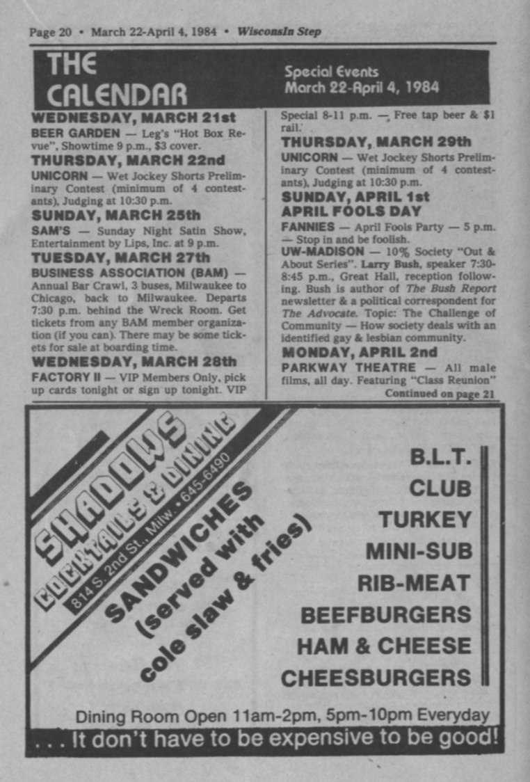 Steppin' Out, cont.: Parkway theatre showing gay films; Milw Area Lambda League; Ballgame anniversary (previously Castaways and Nightbeat)
