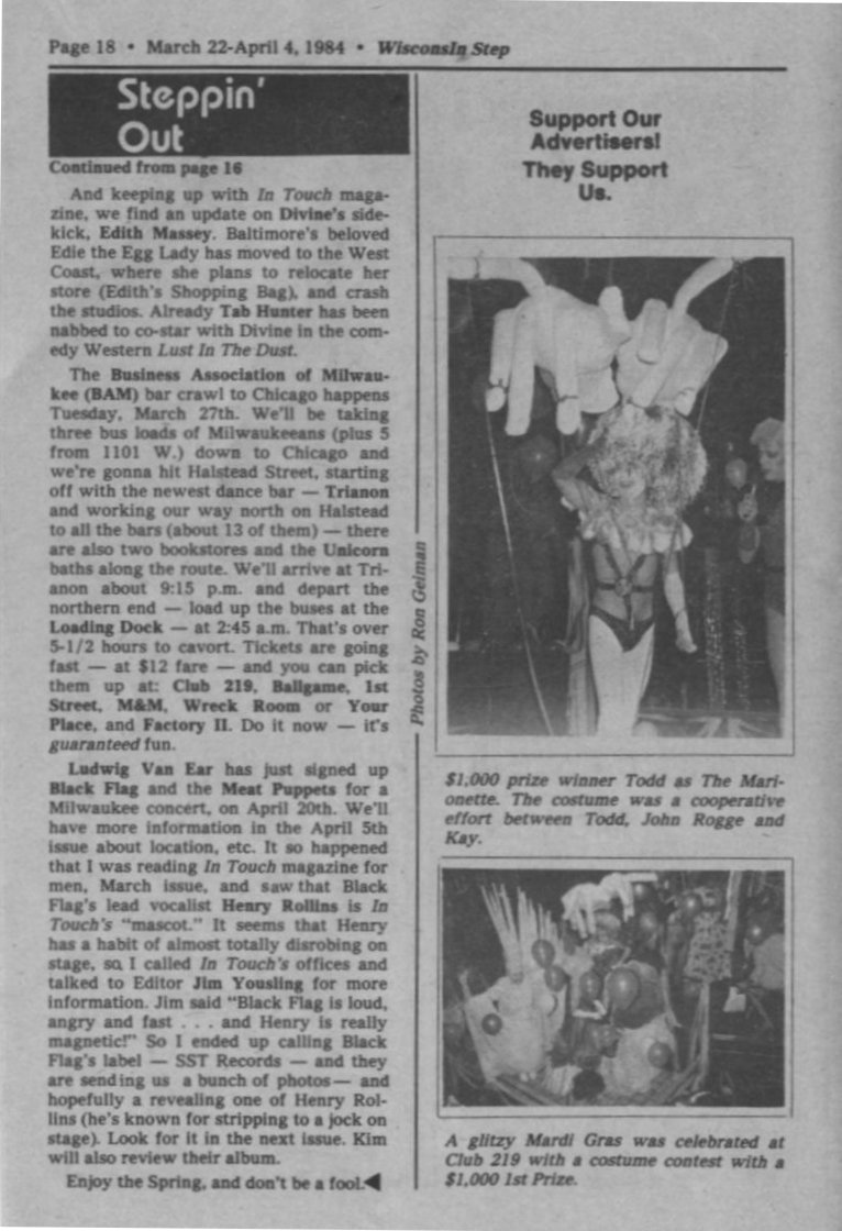 Steppin' Out, cont.: BAM/ Business Association of Milwaukee bar crawl to Chicago;