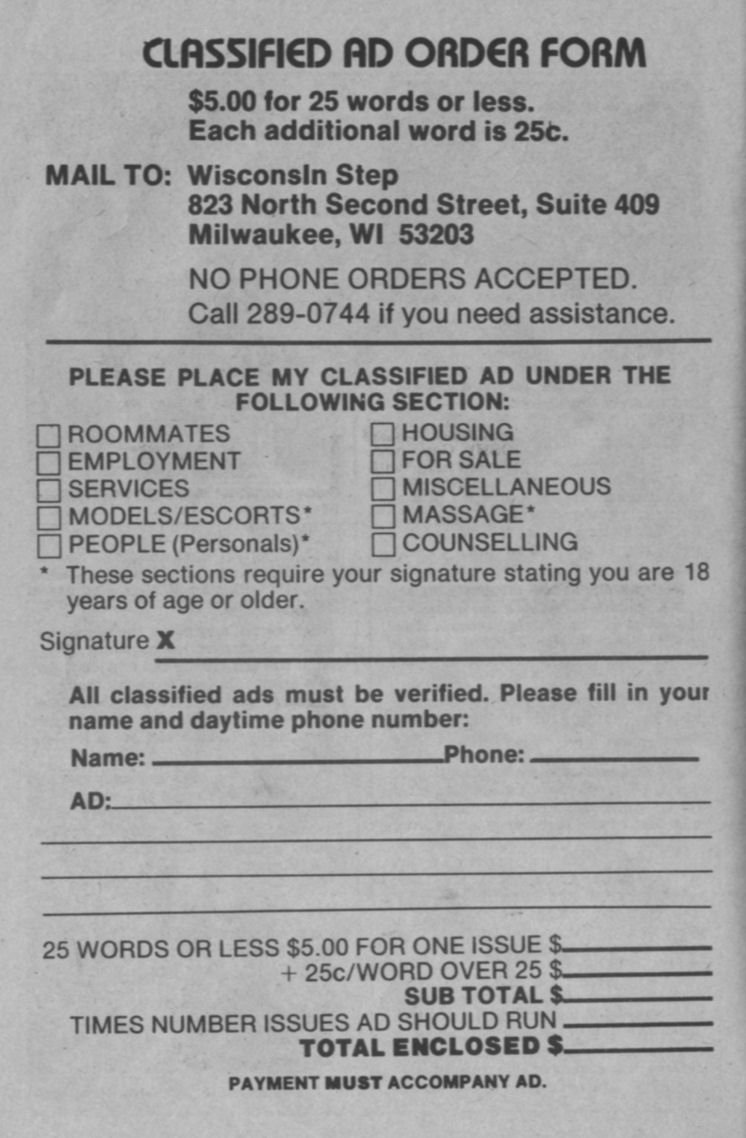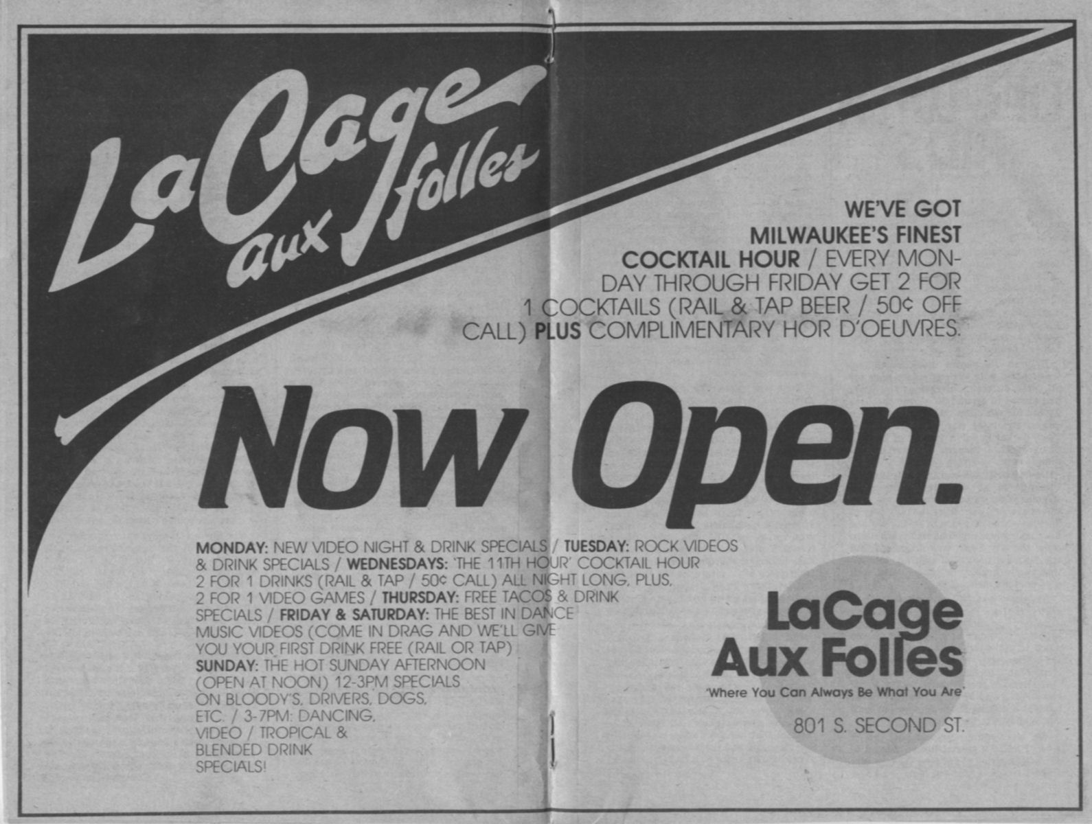 + Ads: Jo'Dee's bar, Racine, and 1101-West, Appleton