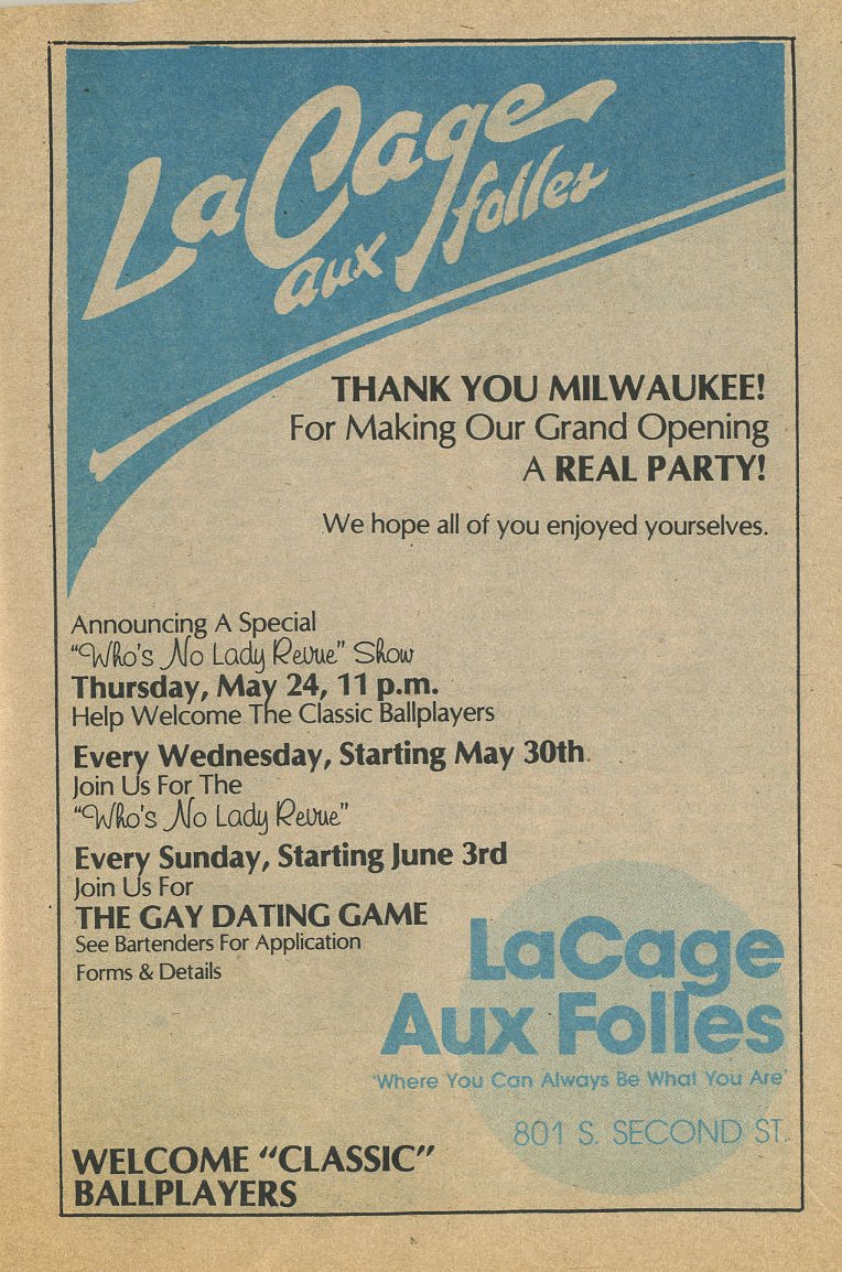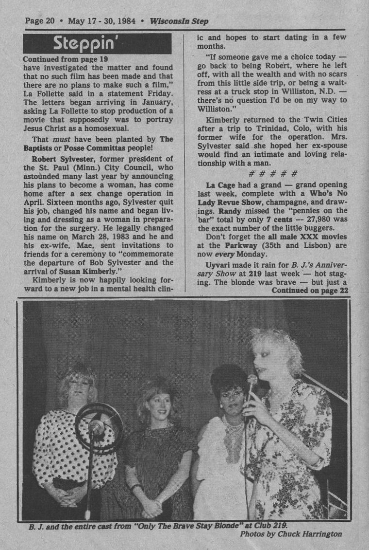 La Cage Aux Folles Grand Opening; B.J.'s anniversary show, Club 219 (incl photo)