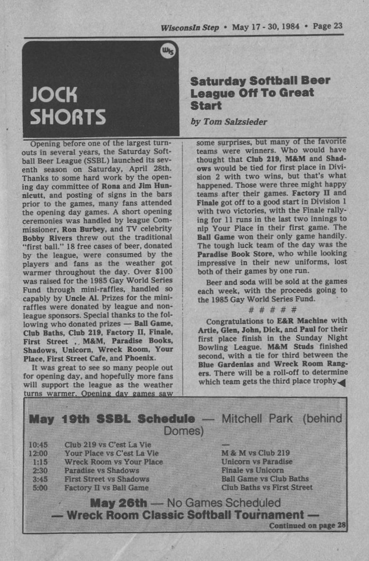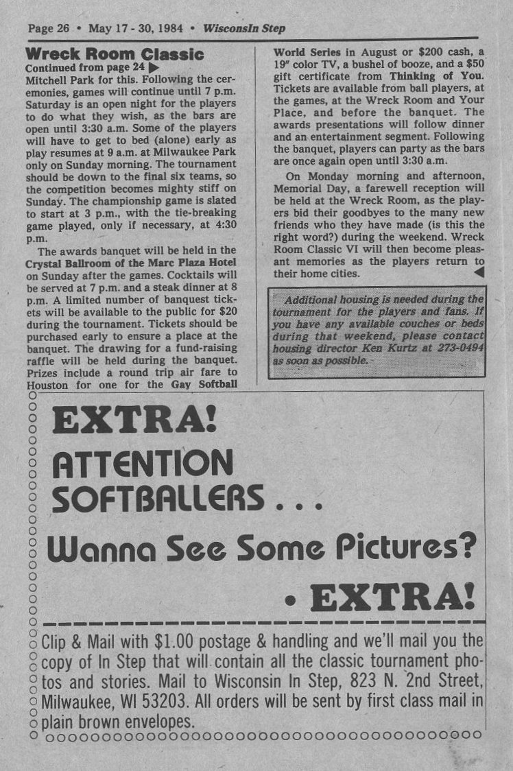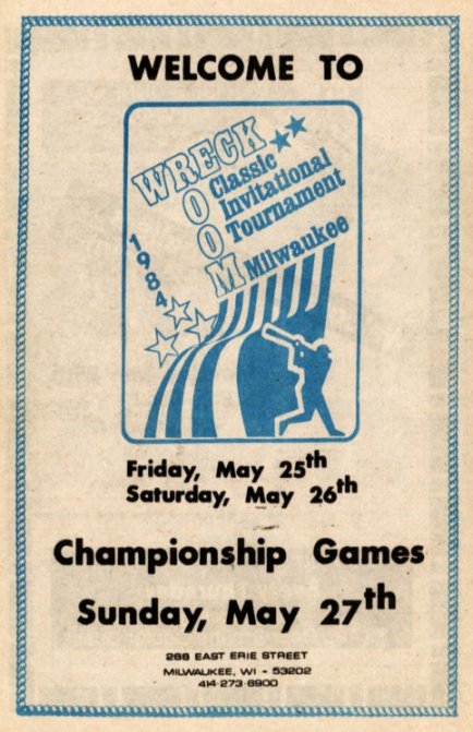 Planning for 6th annual Milwaukee Wreck Room Classic Softball Tournament, including Schedule of Events