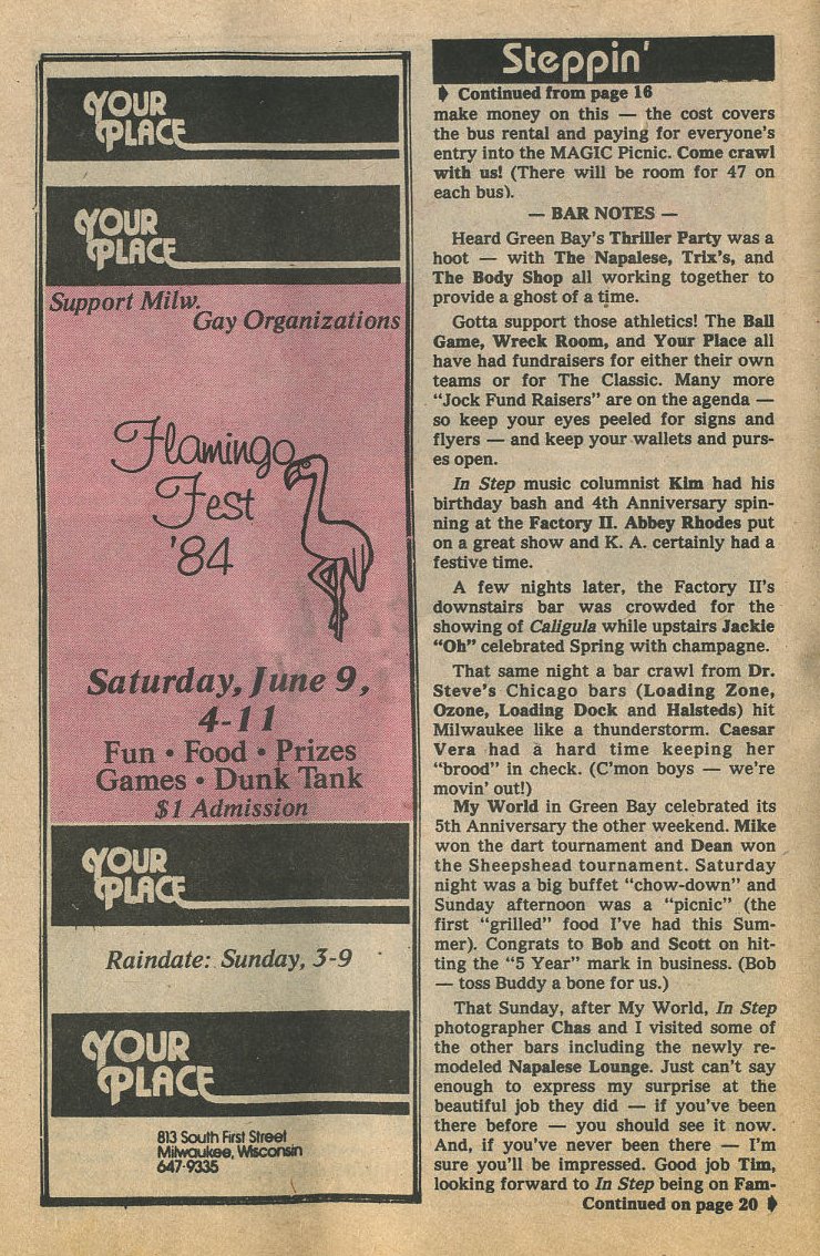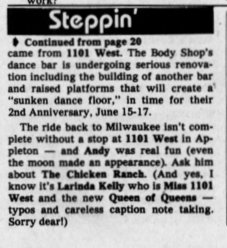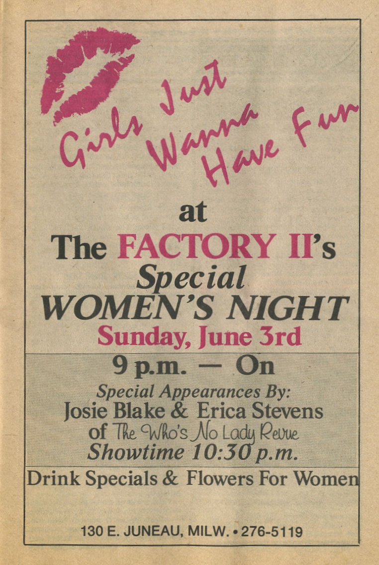 Photos: Kim, DJ of Factory & Factory II, celebrates 4th anniversary with the bars; with Abbey Rhodes, Miss Gay Wisconsin 83/84