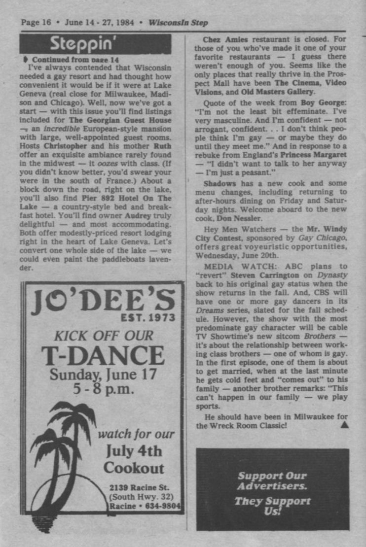 Steppin' Out continued: Fannie Fest, Who's No Lady Revue, Sam's in Madison closed; Body Shop 2nd anniversary weekend