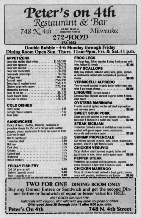 Ad: Peter's on 4th Restaurant & Bar, menu etc.