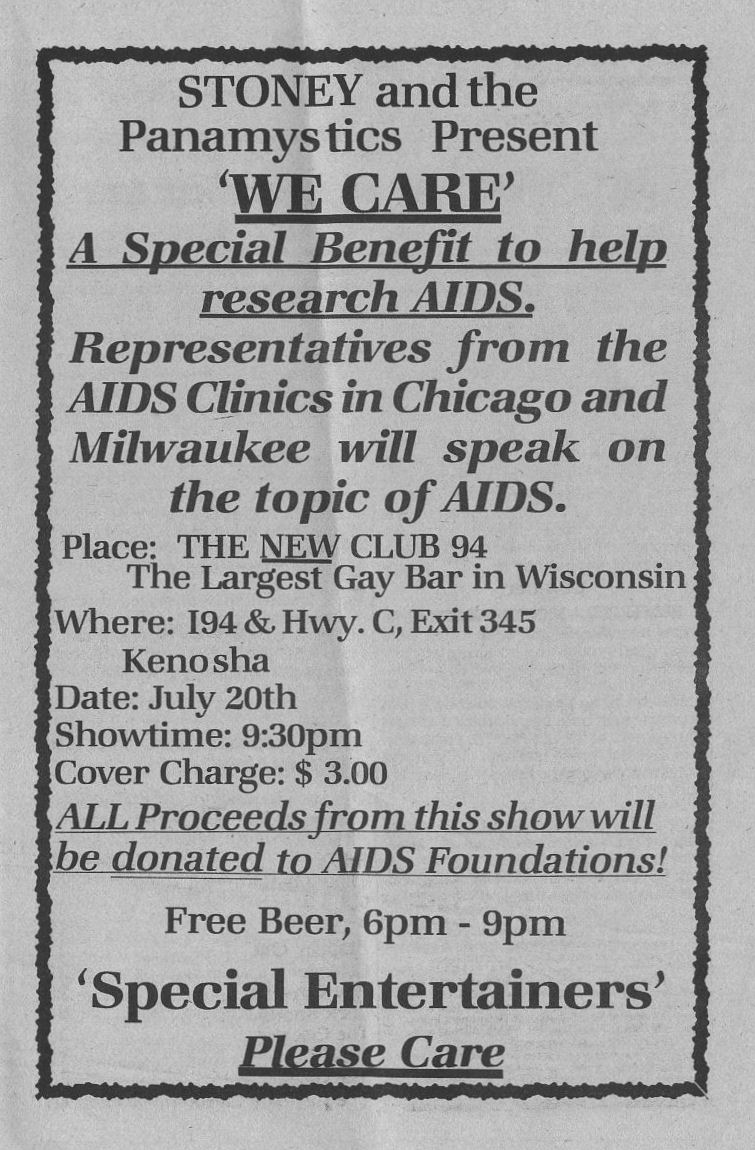 Ad: the new Club 94 hosts "We Care", a special benefit for AIDS research