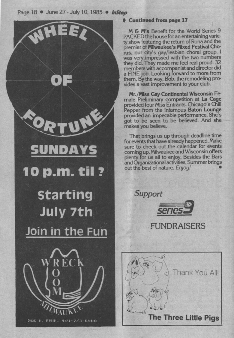 Steppin' Out cont: M&M benefit for World Series 9 packed the house with premier of Milwaukee's Mixed Festival Chorus; Mr./Miss Gay Continental Wisconsin preliminary