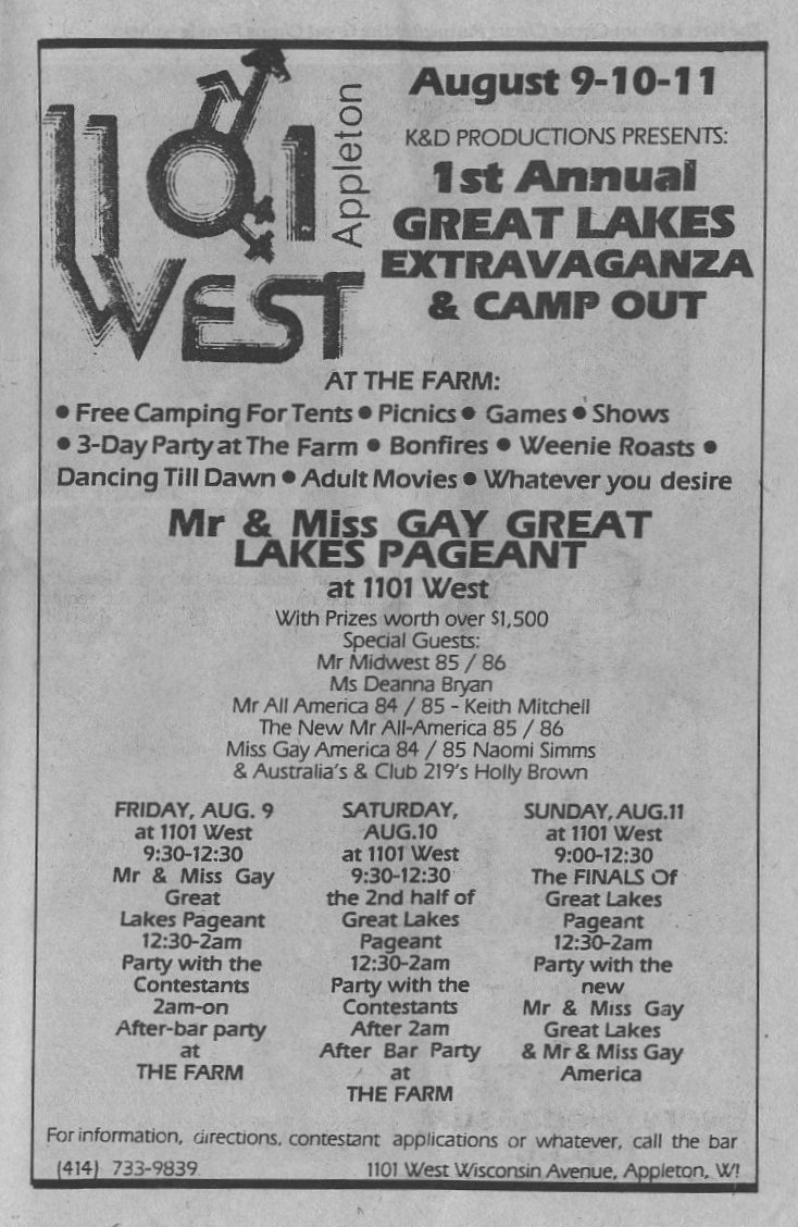 Ad: 1101 West, Appleton: Great Lakes Extravaganza & Camp Out