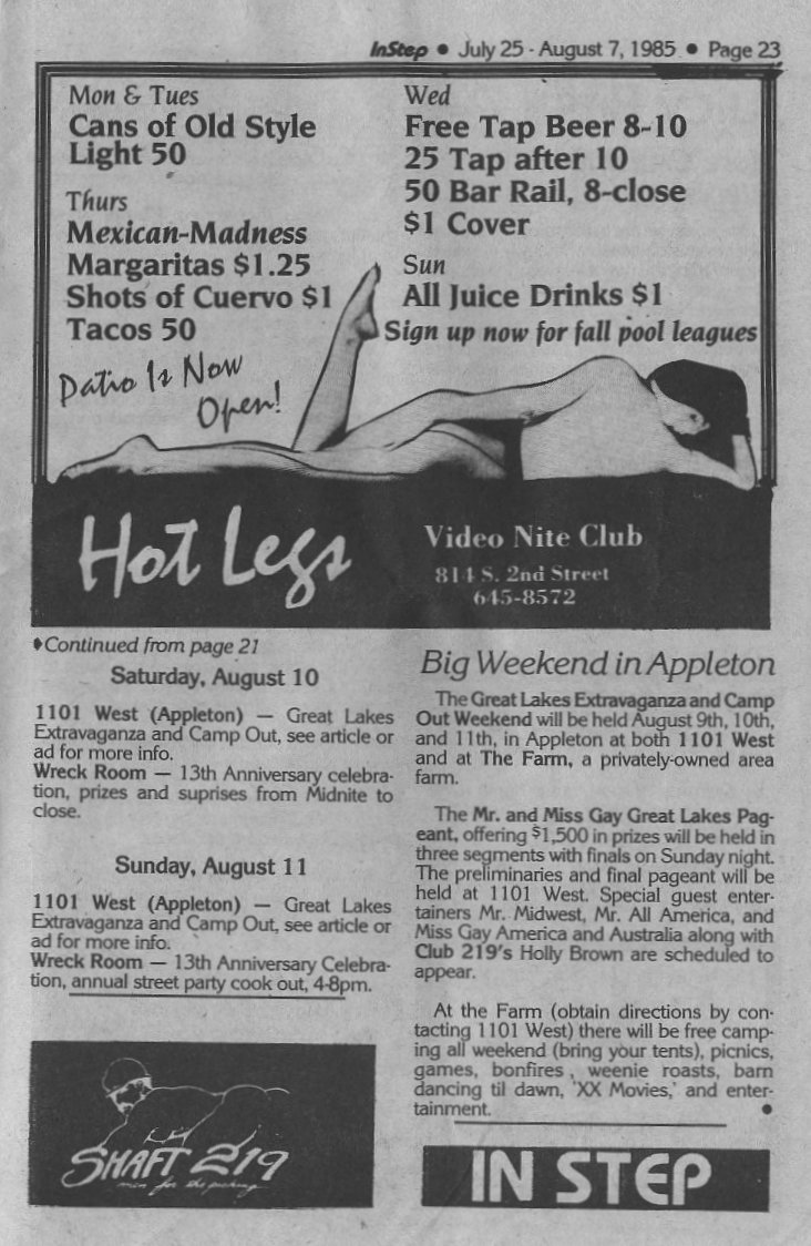 Ad: Hot Legs video night club; Big weekend in Appleton