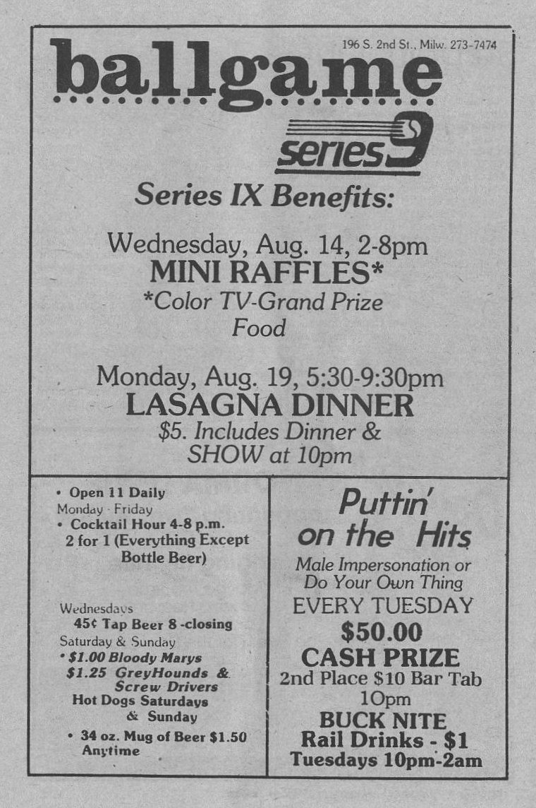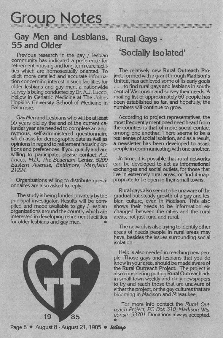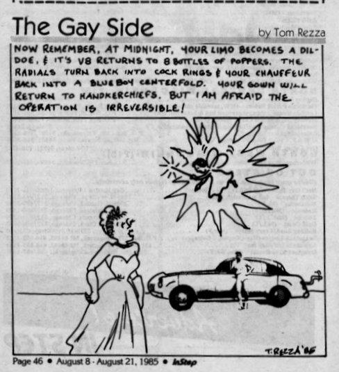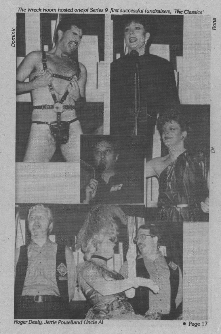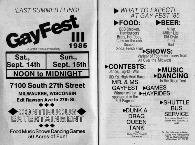 Ads: GayFest 1985 logo; Clay's bar; BESTD Clinic