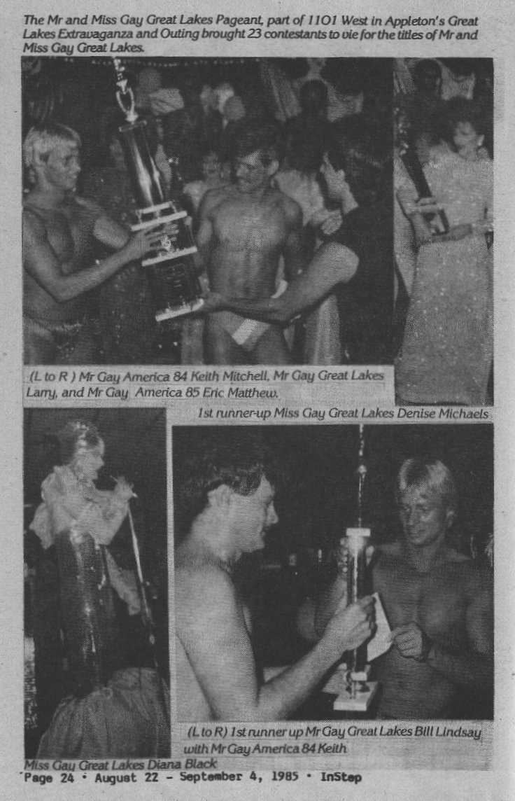 Photos: Mr. and Miss Gay Great Lakes Pageant at 1101 West in Appleton: winners Larry and Diana Black, 1st runners up Bill Lindsay and Denise Michaels