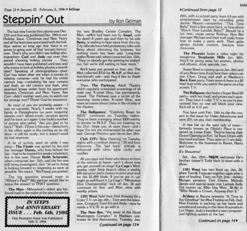 Finale fire; Loose Ends; Mint bar to move; Parkway theatre closed