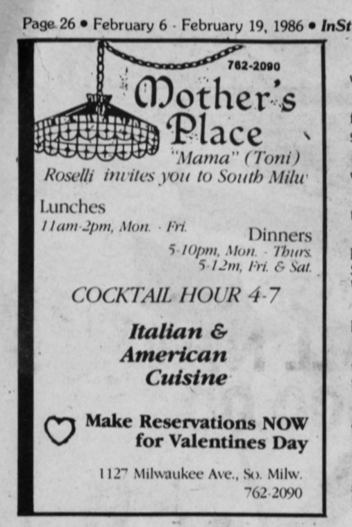 Mothers Place Restaurant ad