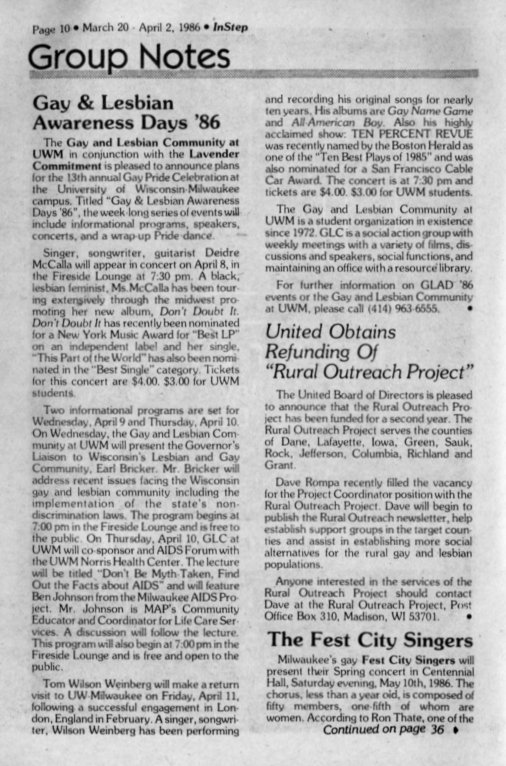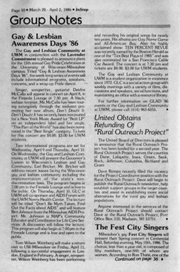 Group Notes: Gay & Lesbian Awareness Days 1986