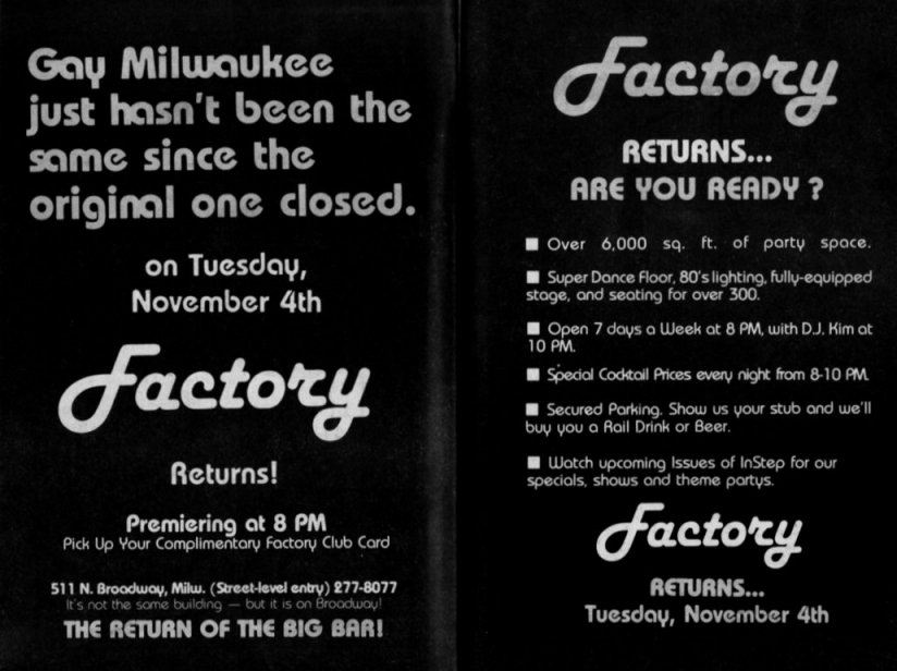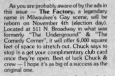 the 3rd bar to bear the name "Factory" opening; 6,000 sq. ft. at 511 N. Broadway