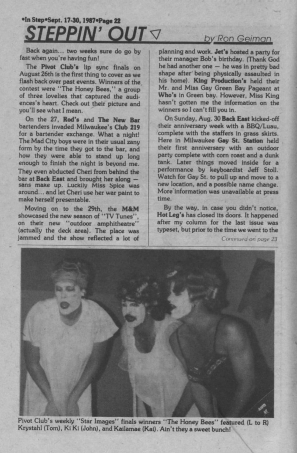 Steppin' Out: Rods and New Bar bartenders invade Club 219; Cheri's Back East/ Madison celebrates 3rd anniversary, while Hot Legs closes + Photo: Pivot Club's weekly Star Images