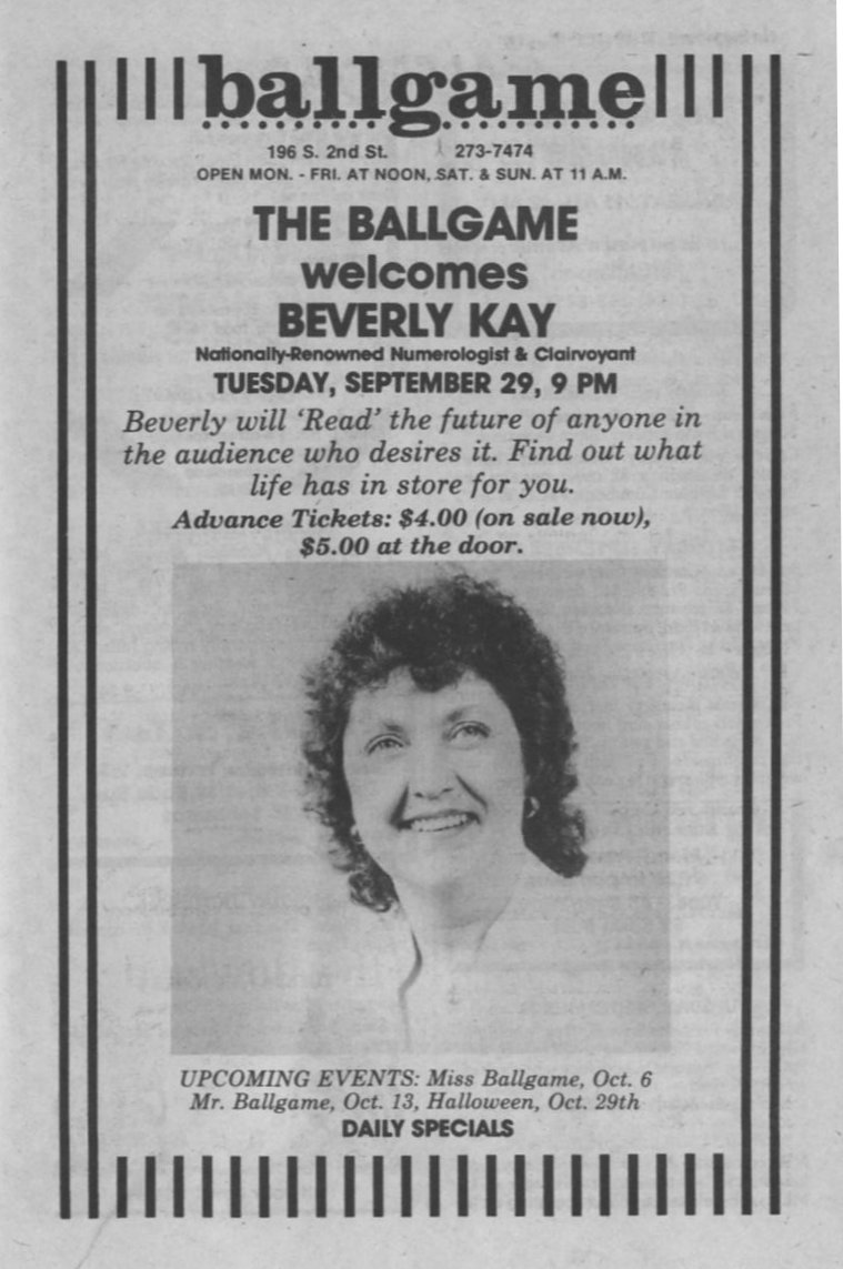 Ad: Ballgame welcomes Beverly Kay numerologist and clairvoyant