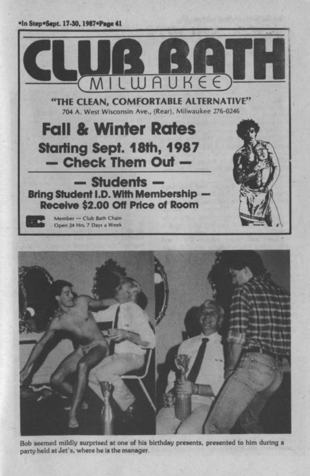 Photo: Jet's manager Bob's birthday party and present; + Ad: Club Bath Milwaukee