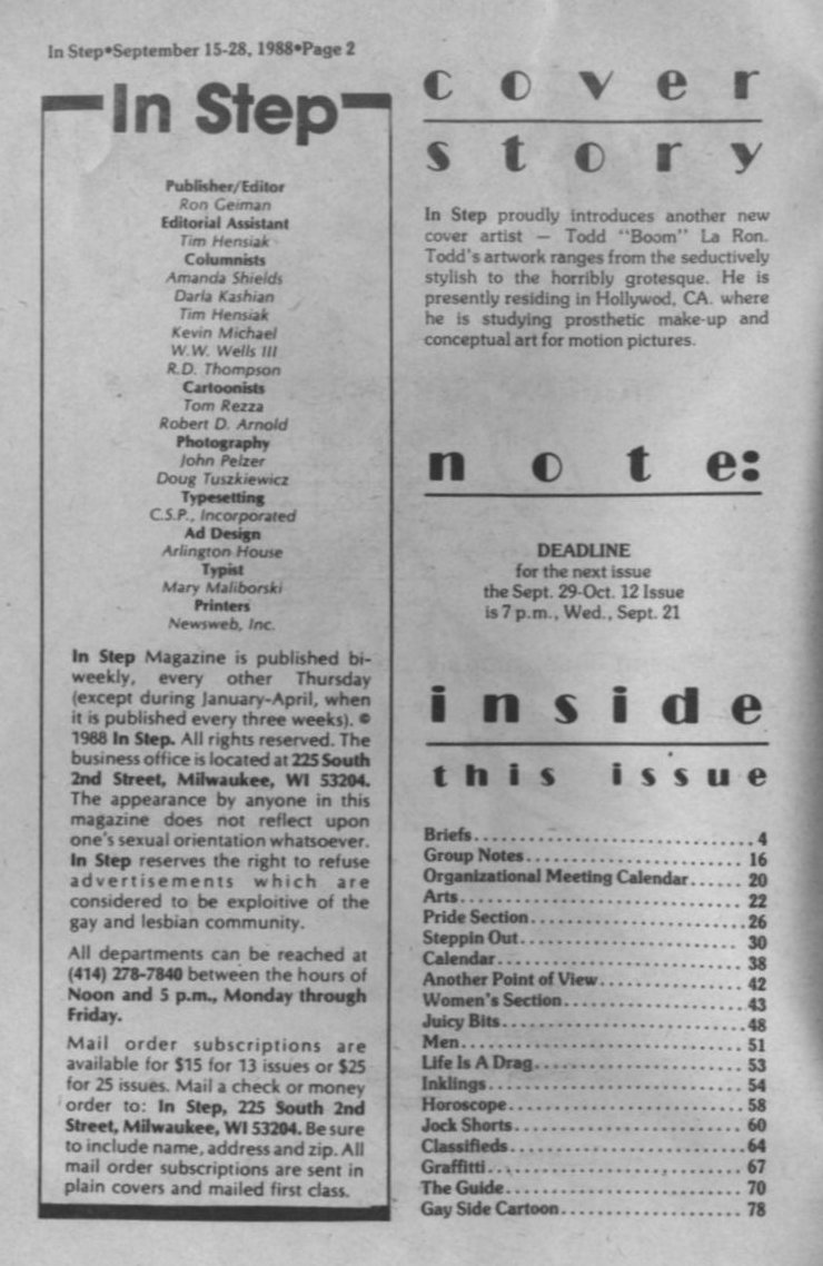 Masthead & Cover Story: new artist Todd 'Boom' La Ron