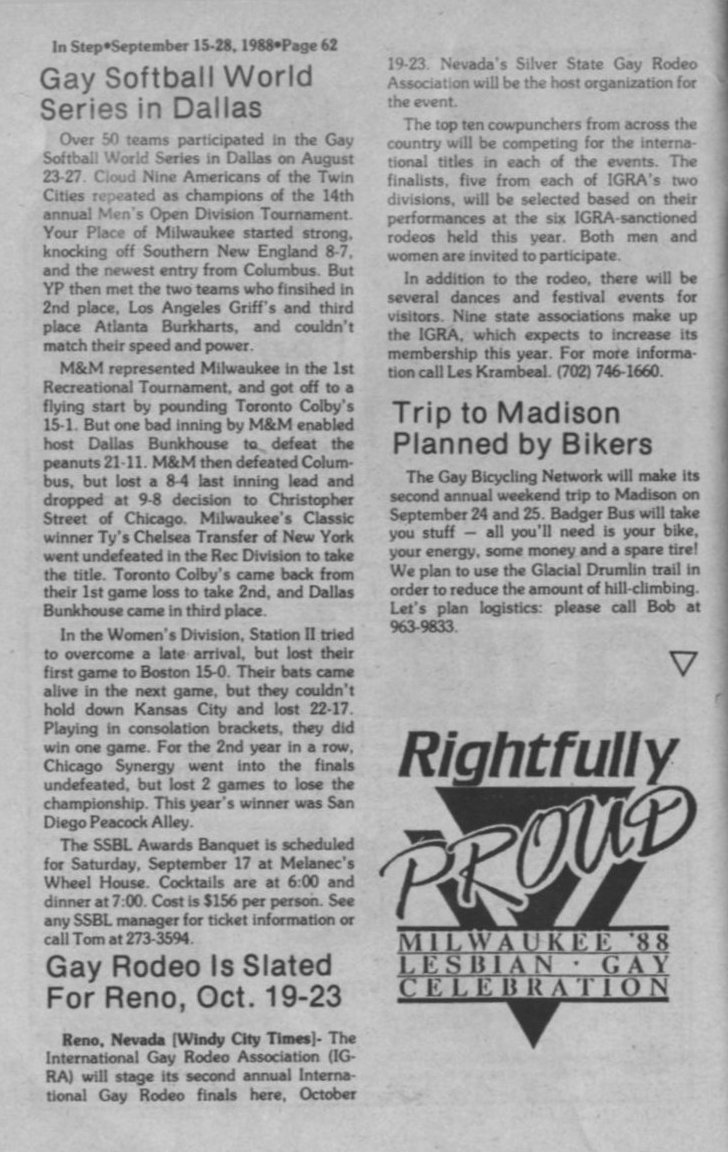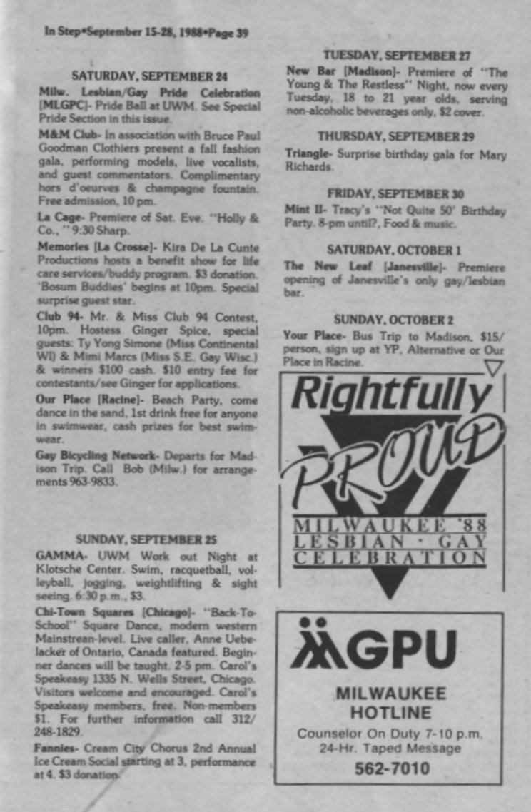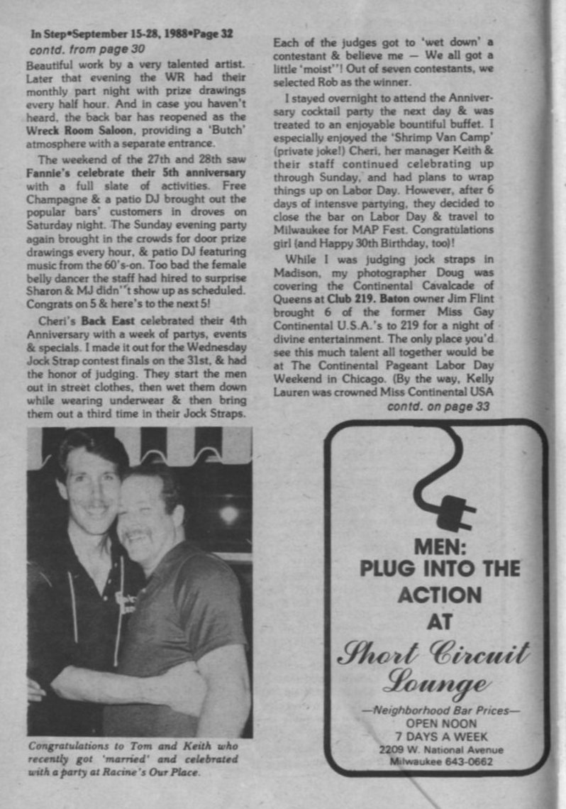 Steppin' out, cont: + Photo: bar owners Paul (Our Place), Al (Triangle), Gordon (Pivot), and Bob (Club 94).