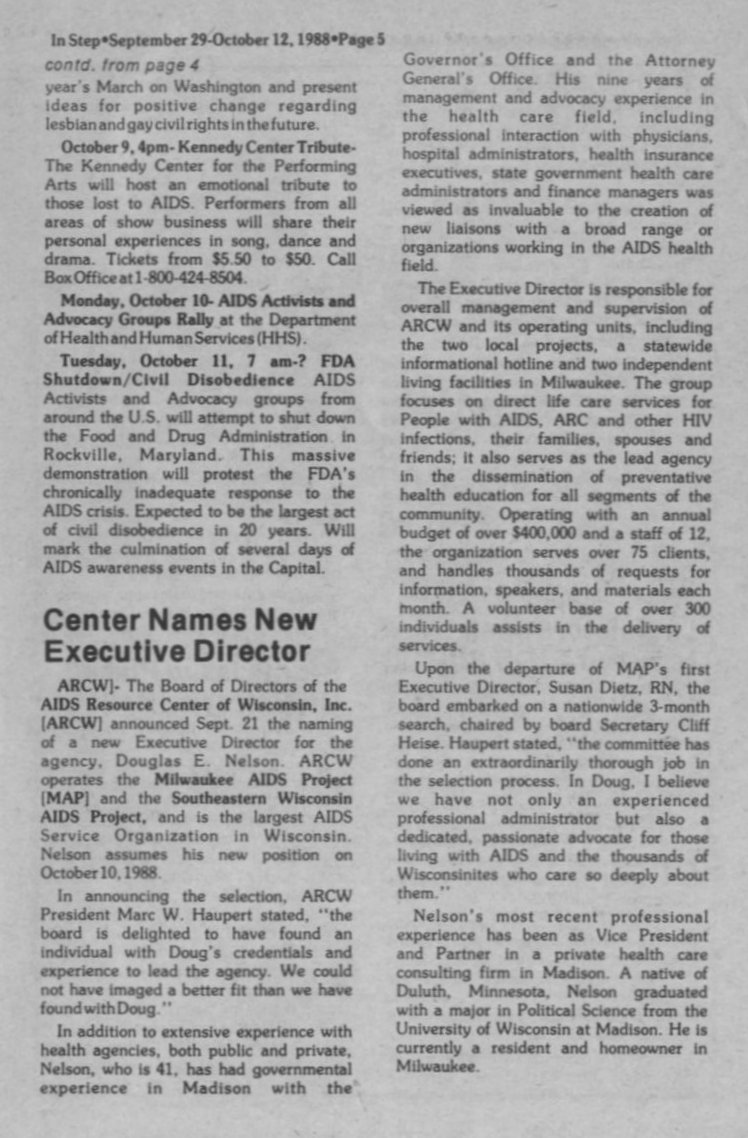 Briefs continued: ARCW/ AIDS Resource Center of Wisconsin names new Executive Director Douglas E. Nelson