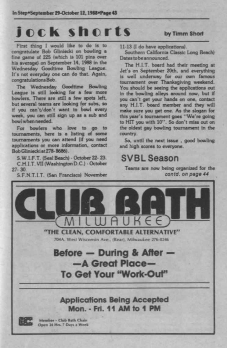 Jock Shorts, cont. + Photo: Manager Bob Schicker's birthday at Jet's Place bar