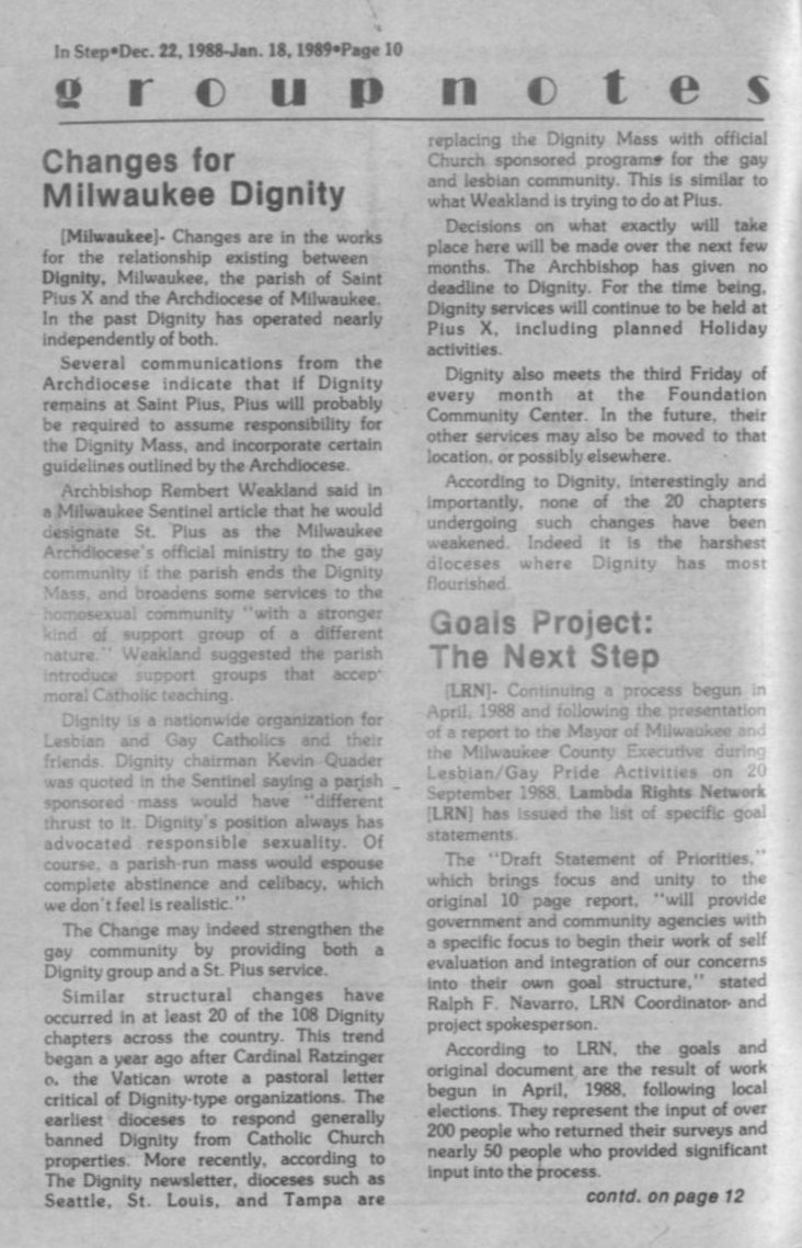 Group Notes: Changes for Milwaukee Dignity;