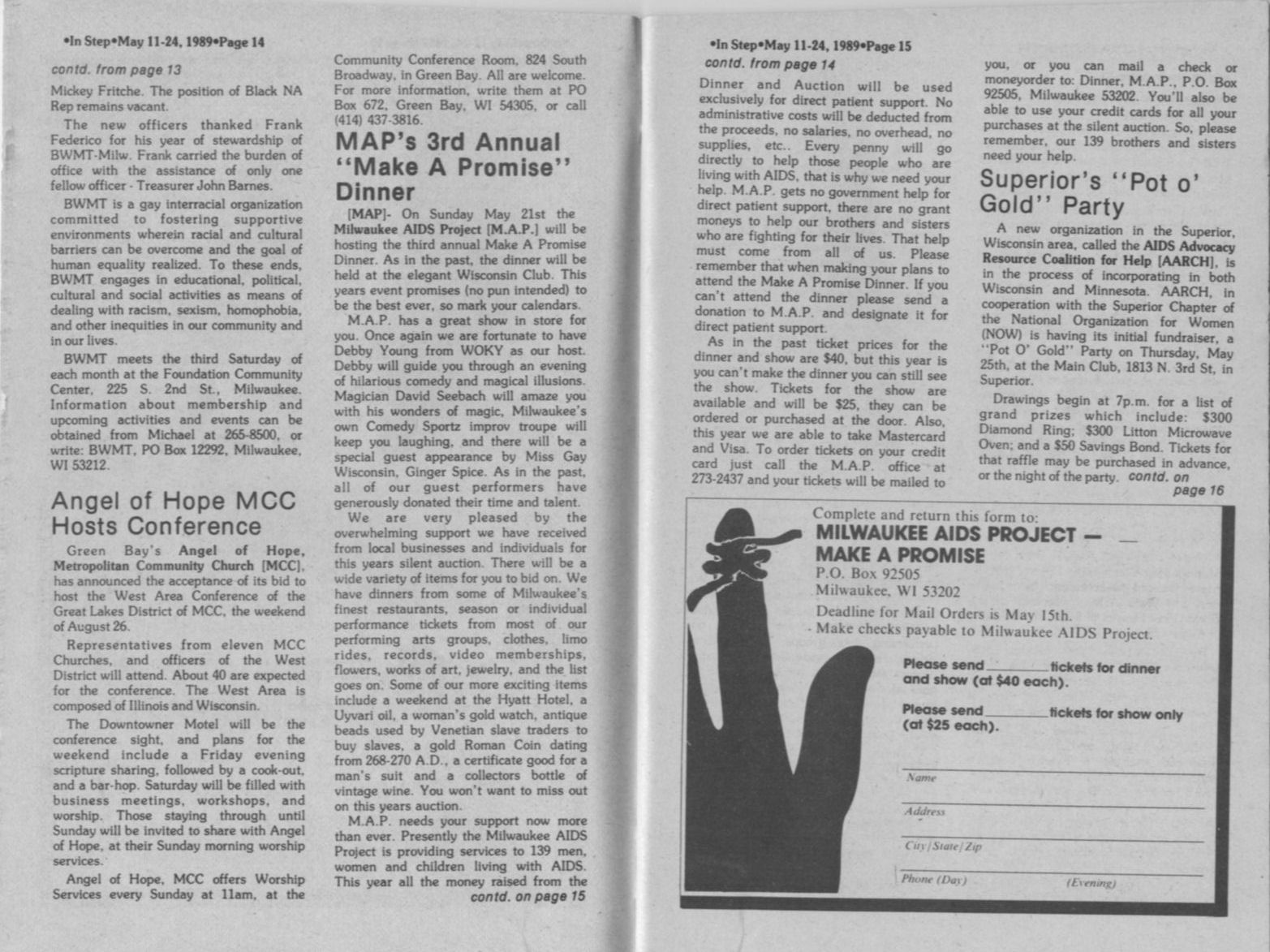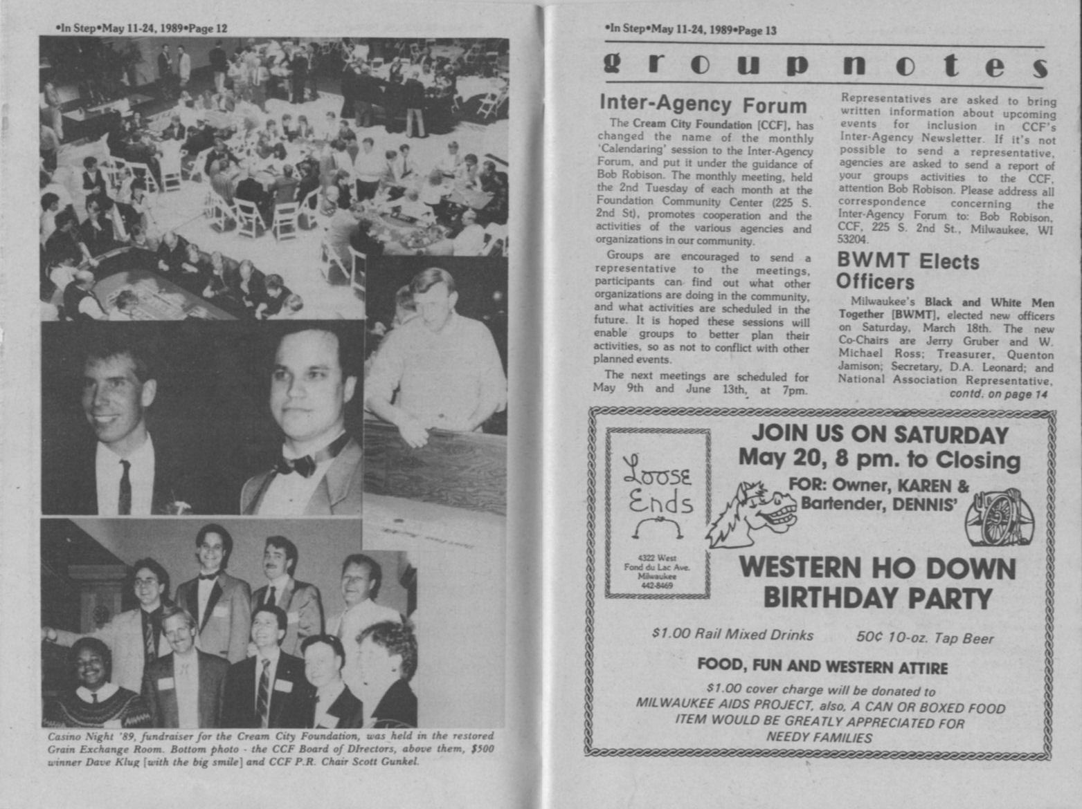 Group Notes: Cream City Foundation/ CCF Interagency forum; Black and White Men Together/ BWMT elects officers + Ad: Loose Ends Western Ho Down birthday party for owner Karen & bartender Dennis