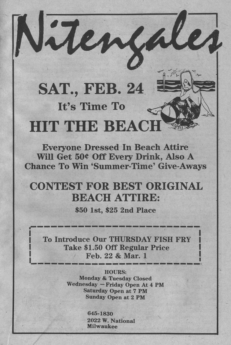 Ad: Nitegales 'Hit the Beach', Milwaukee