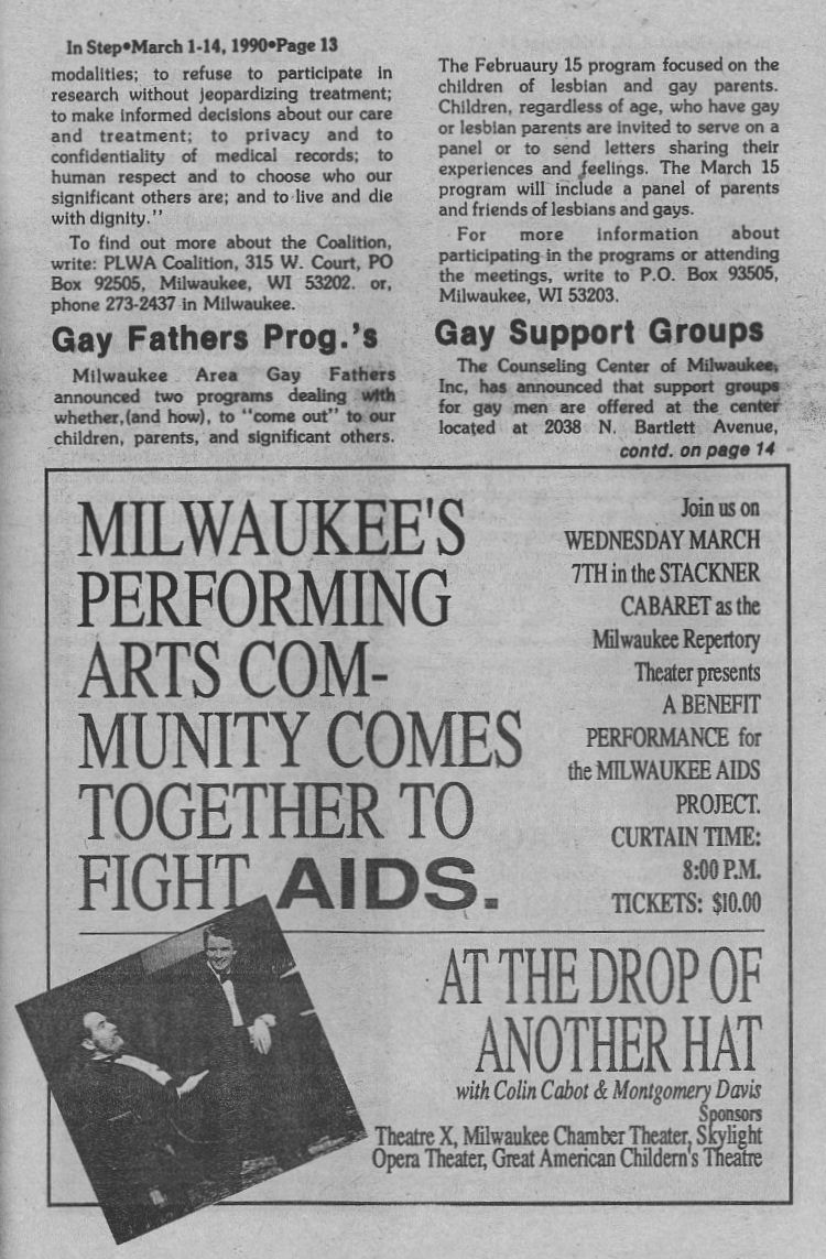 | Group Notes, cont.: Milwaukee Area Gay Fathers announces two programs; Counseling Center of Milwaukeee support groups (page 13)